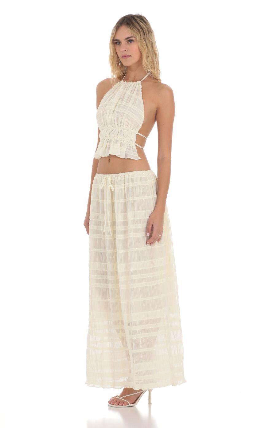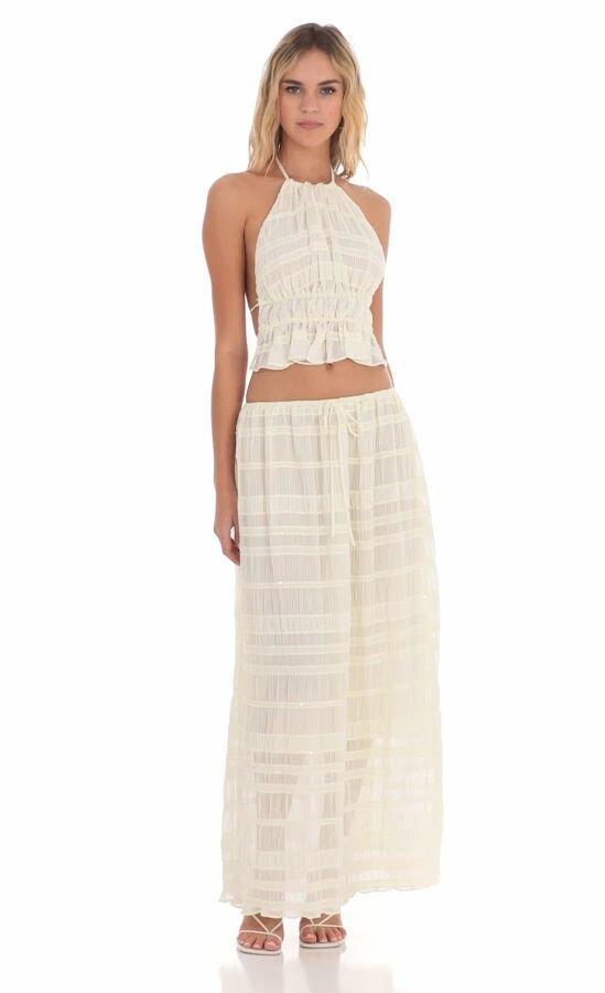 Primavera y Otoño 2025 Nuevo Comercio Exterior Transfronterizo Top Halter para Mujer Color Sólido Temperamento Color Sólido Falda Traje de Moda