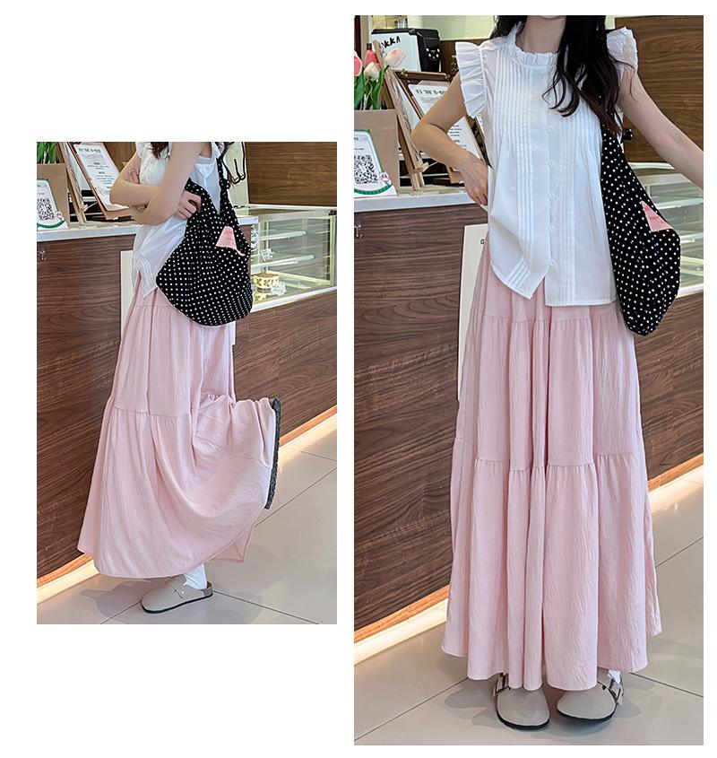 Falda de Pastel Primavera Nuevo Ropa Exterior para Mujer Cintura Alta Ajustada Falda Línea A Combinable Largo Medio Falda Dulce