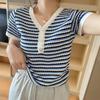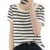 Playera de Punto a Rayas de Manga Corta para Mujer 25 Verano Nueva Tencel Cuello Cuadrado Elegante Top Corto Venta al por Mayor Transfronteriza de Manga Corta