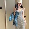 Verano 2020 Nuevo Europeo y Americano Francés Nicho Moda Cintura Ceñida Adelgazante Estampado Elegante Vestido de Tirantes