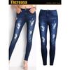Europeo Aliexpress Estilo Europeo y Americano para Mujer Elástico Ajustado Cintura Media-Alta Bordado Roto Jeans para Mujer