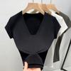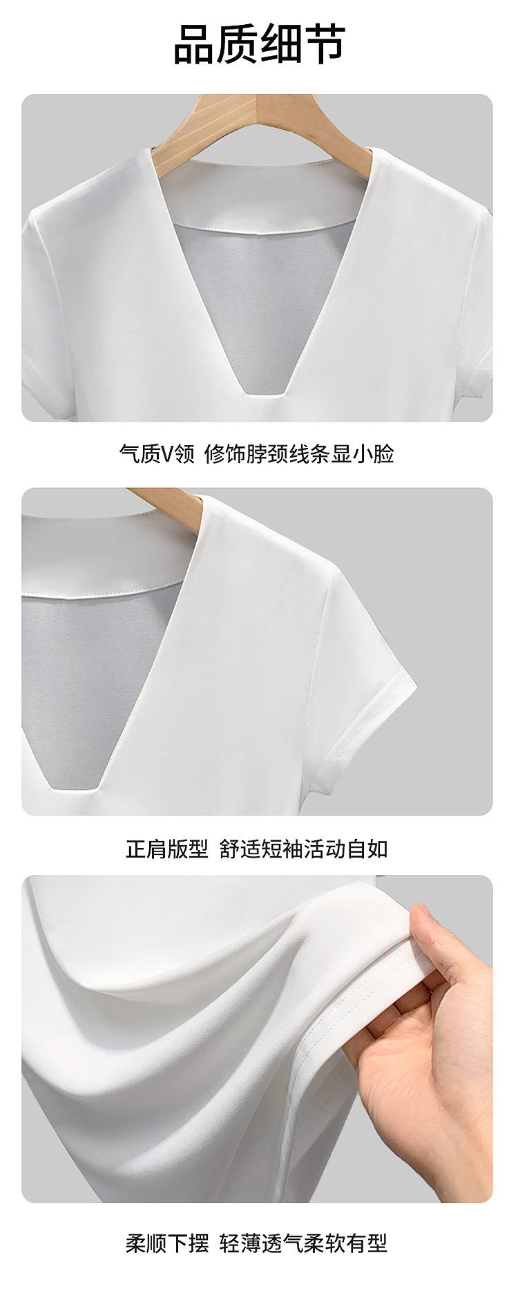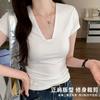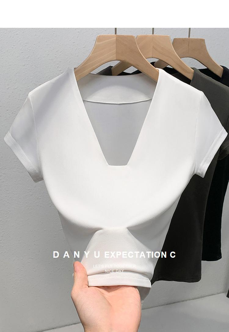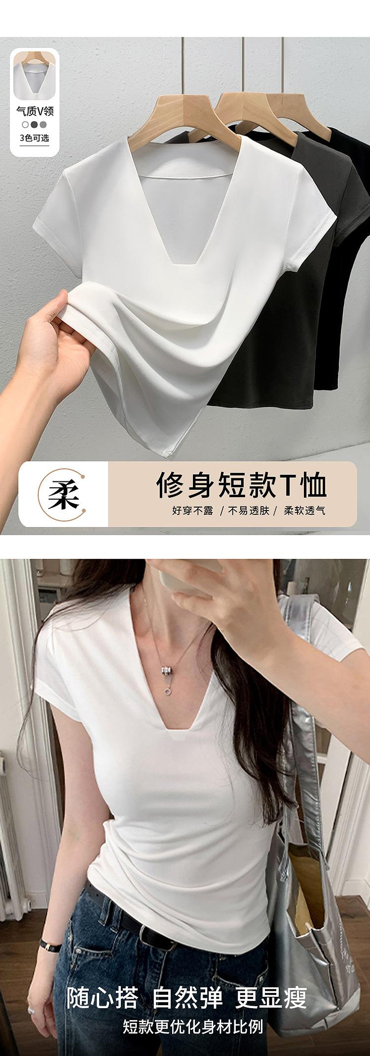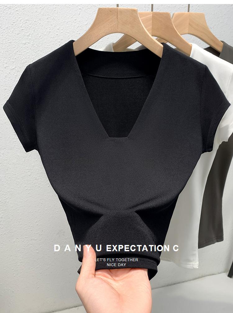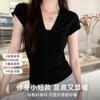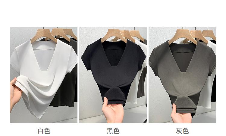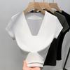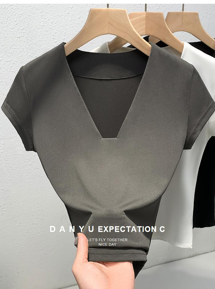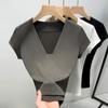 Playera de hombro de manga corta para mujer 2025 nueva para mujer adelgazante cuello en V elástica diseño ajustado camisa una generación de cabello