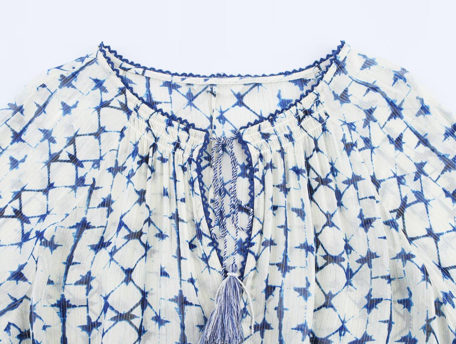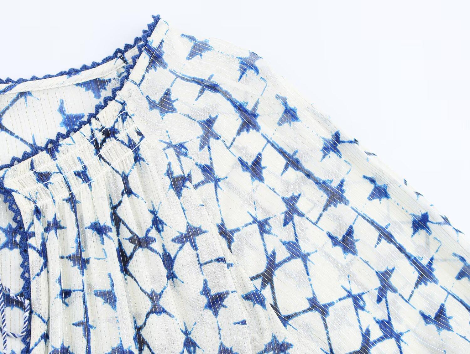 Ropa Europea y Americana Transfronteriza 2025 Primavera y Verano Nueva Moda Camisa Estampada con Hilo Metálico 1821024
