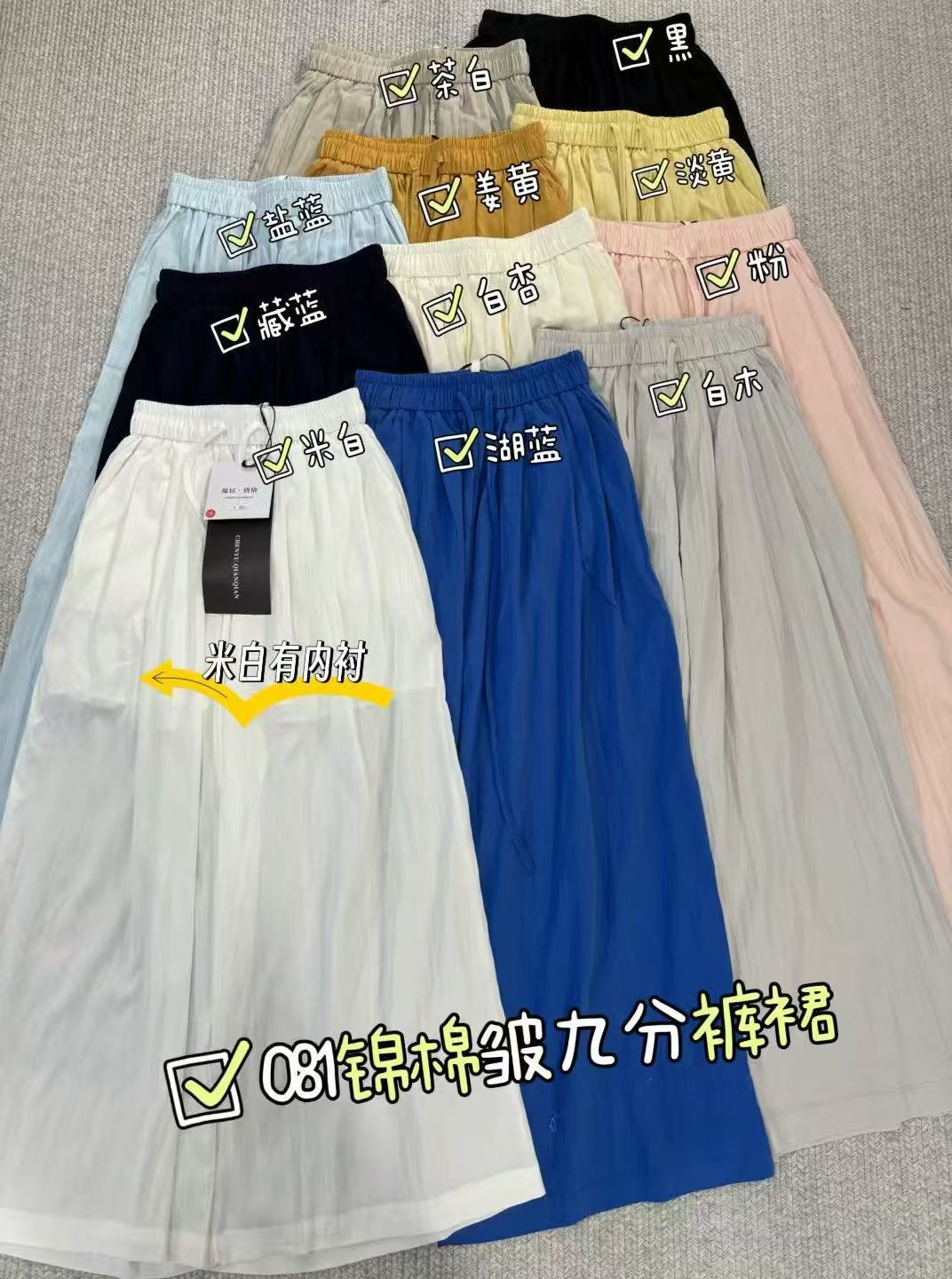 Tea white, Black, Smoke blue, Turmeric, Light yellow, Navy blue, White apricot, Powder, Off-white, Lake blue, White wood
