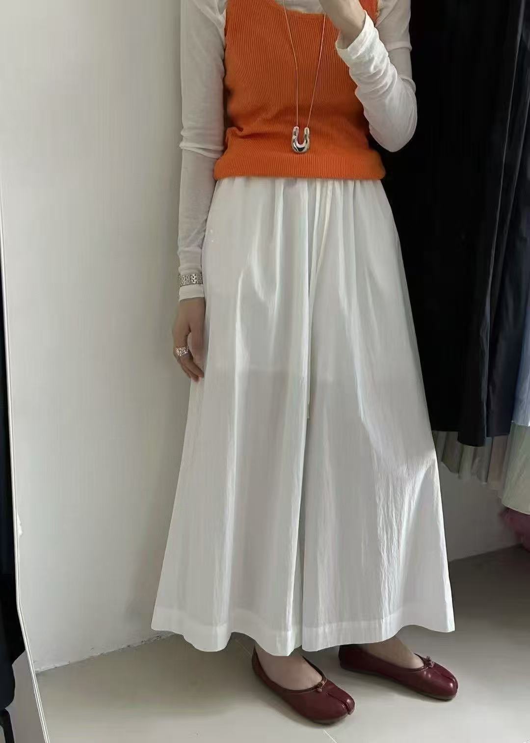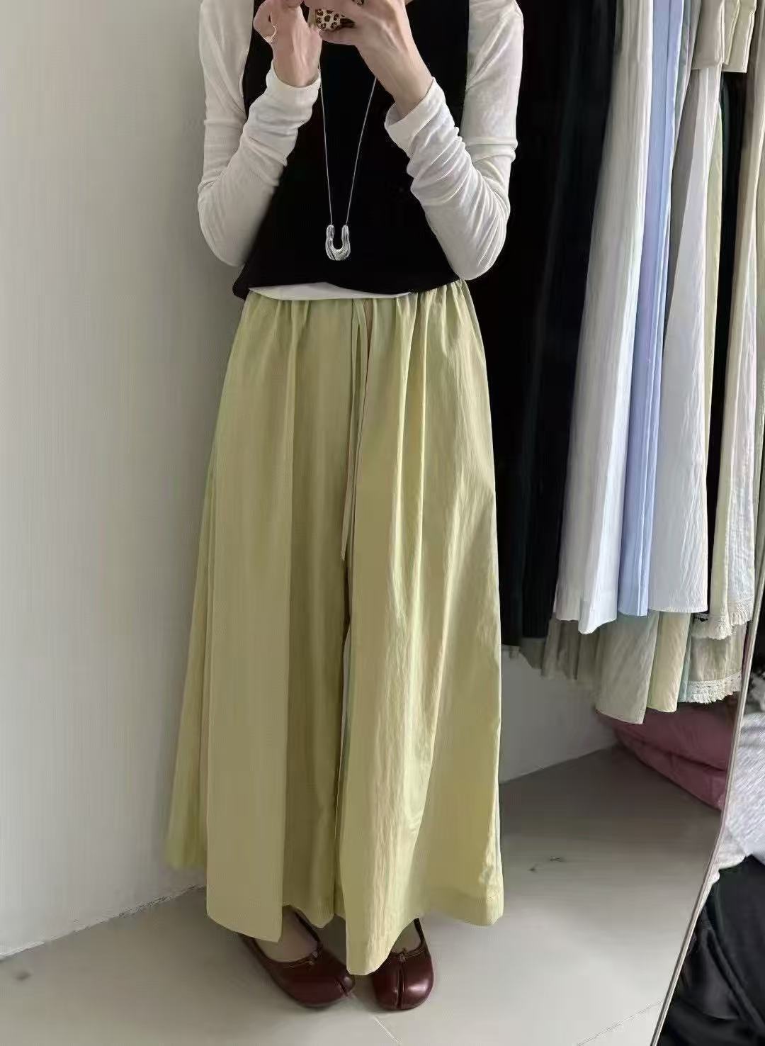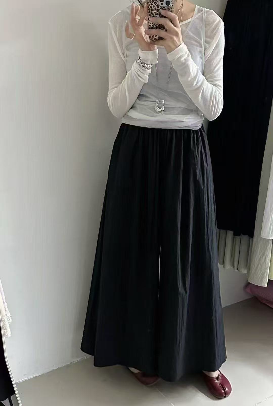 Pantalones Casuales de Moda Vintage de Pierna Ancha para Mujer, Verano Delgados de Cintura Alta con Caída, Pantalones Rectos Cortos, Pantalones Casuales Sueltos Falda