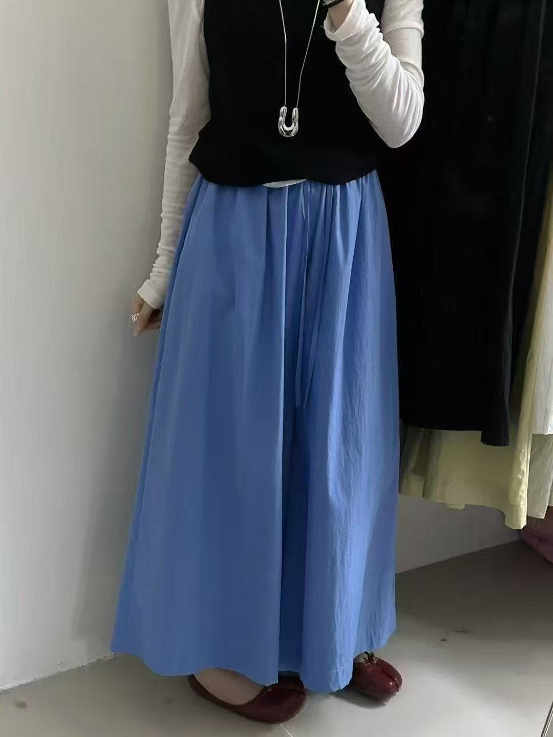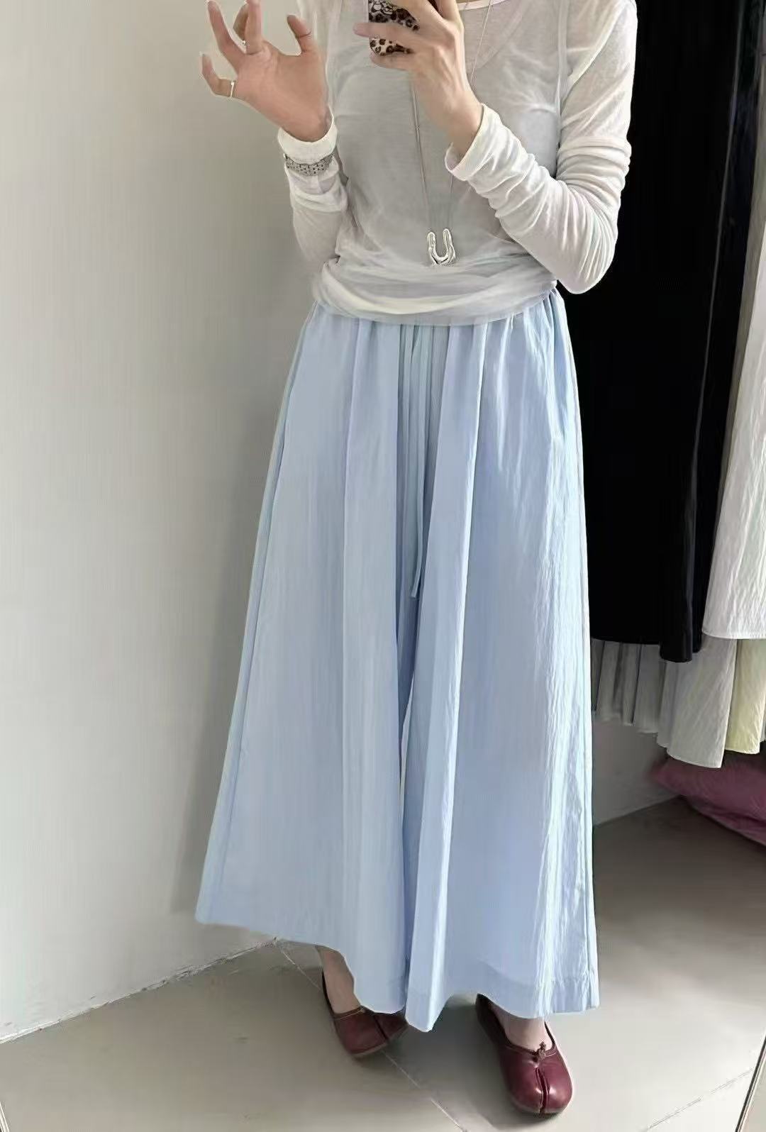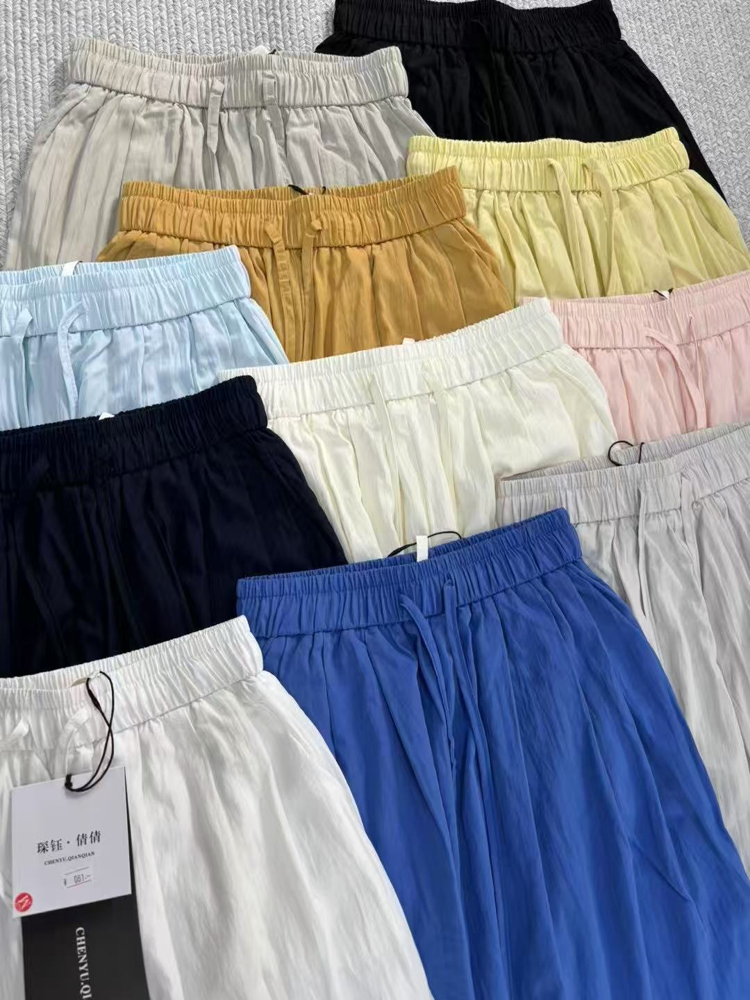 Pantalones Casuales de Moda Vintage de Pierna Ancha para Mujer, Verano Delgados de Cintura Alta con Caída, Pantalones Rectos Cortos, Pantalones Casuales Sueltos Falda