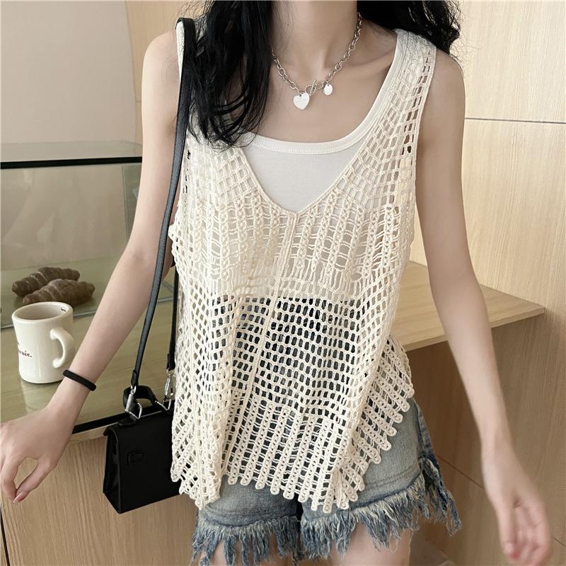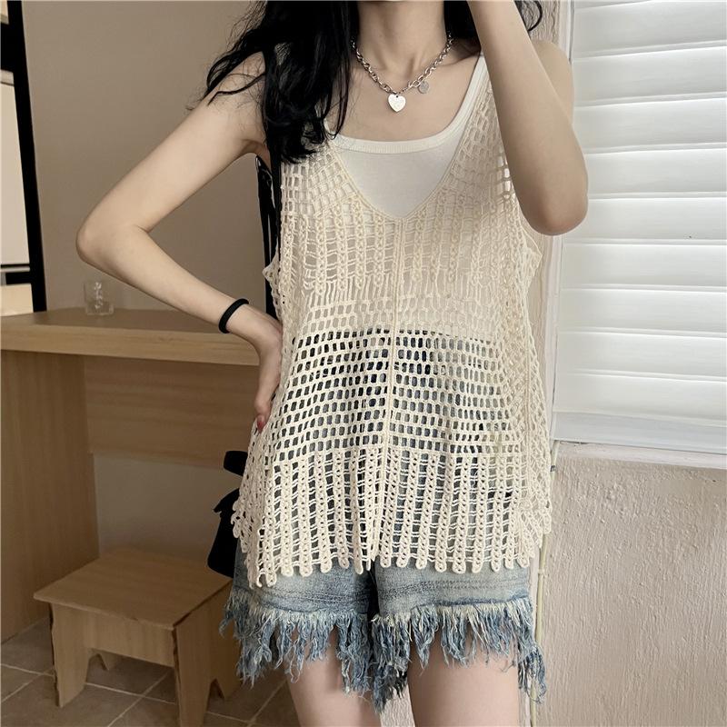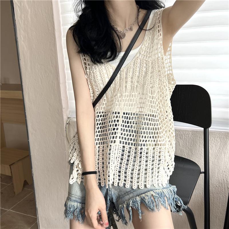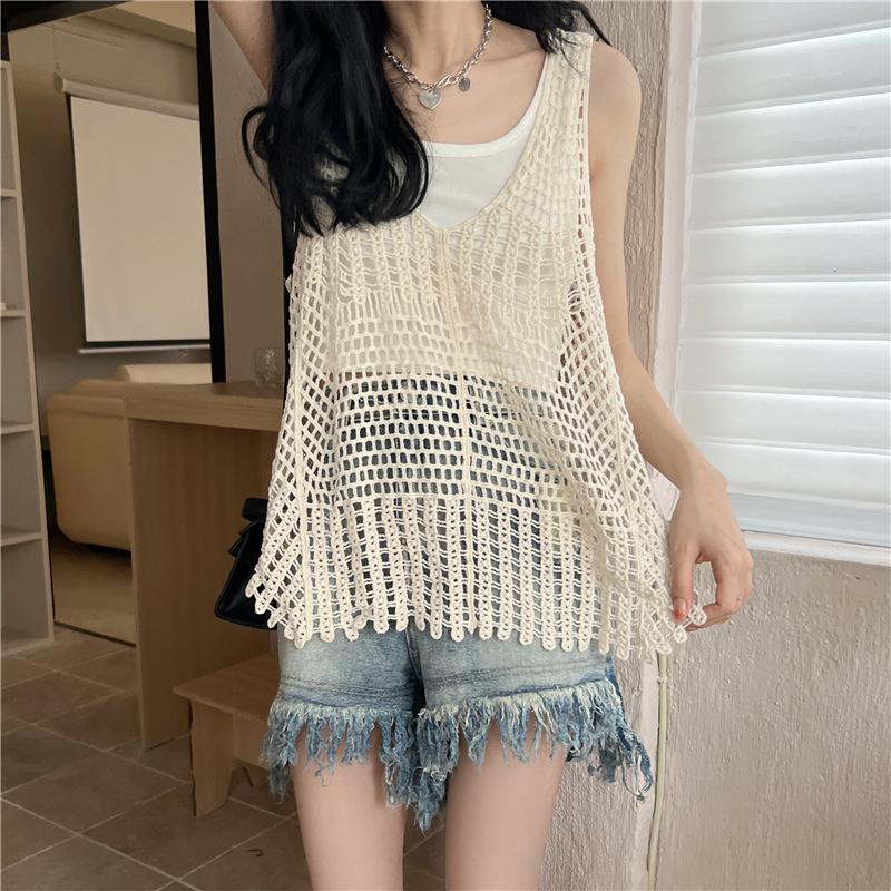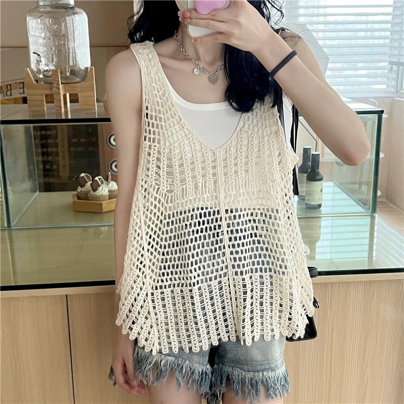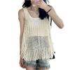 Blusa tipo chaleco de crochet hueca de verano nueva, color blanco