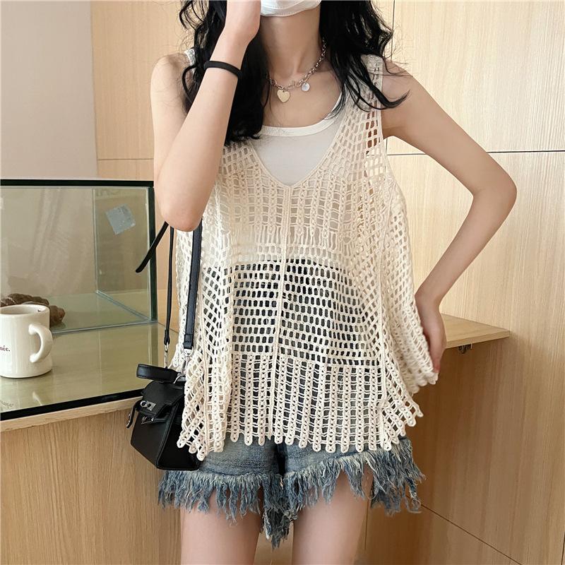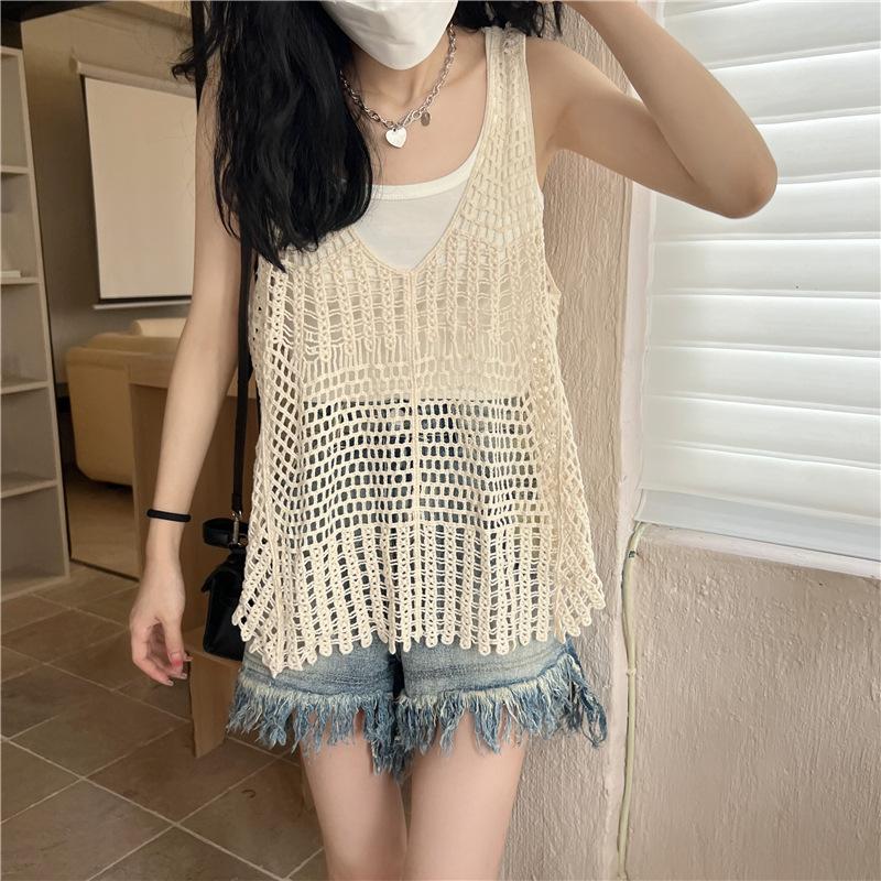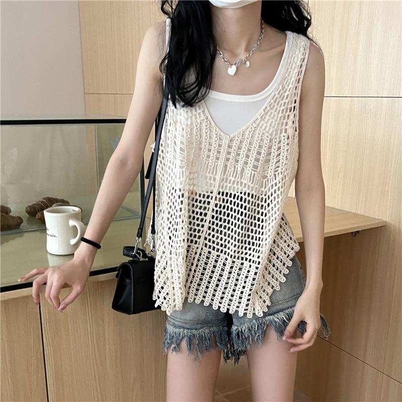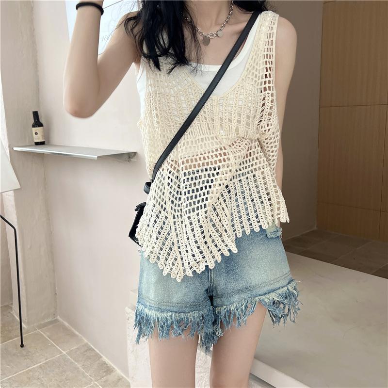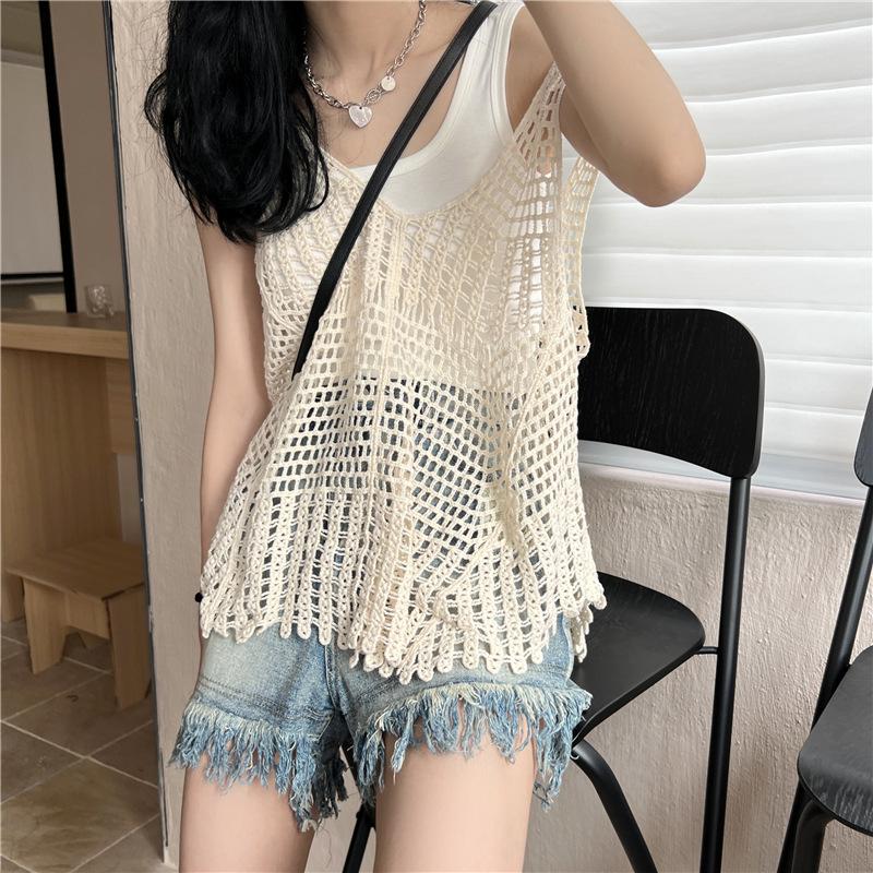 Blusa tipo chaleco de crochet hueca de verano nueva, color blanco
