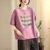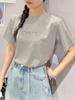 Verano Nuevo para Mujer Manga Corta Holgado Diseño de Algodón Talla Grande Cuello Redondo Top Estampado Camisa de Letras a la Moda