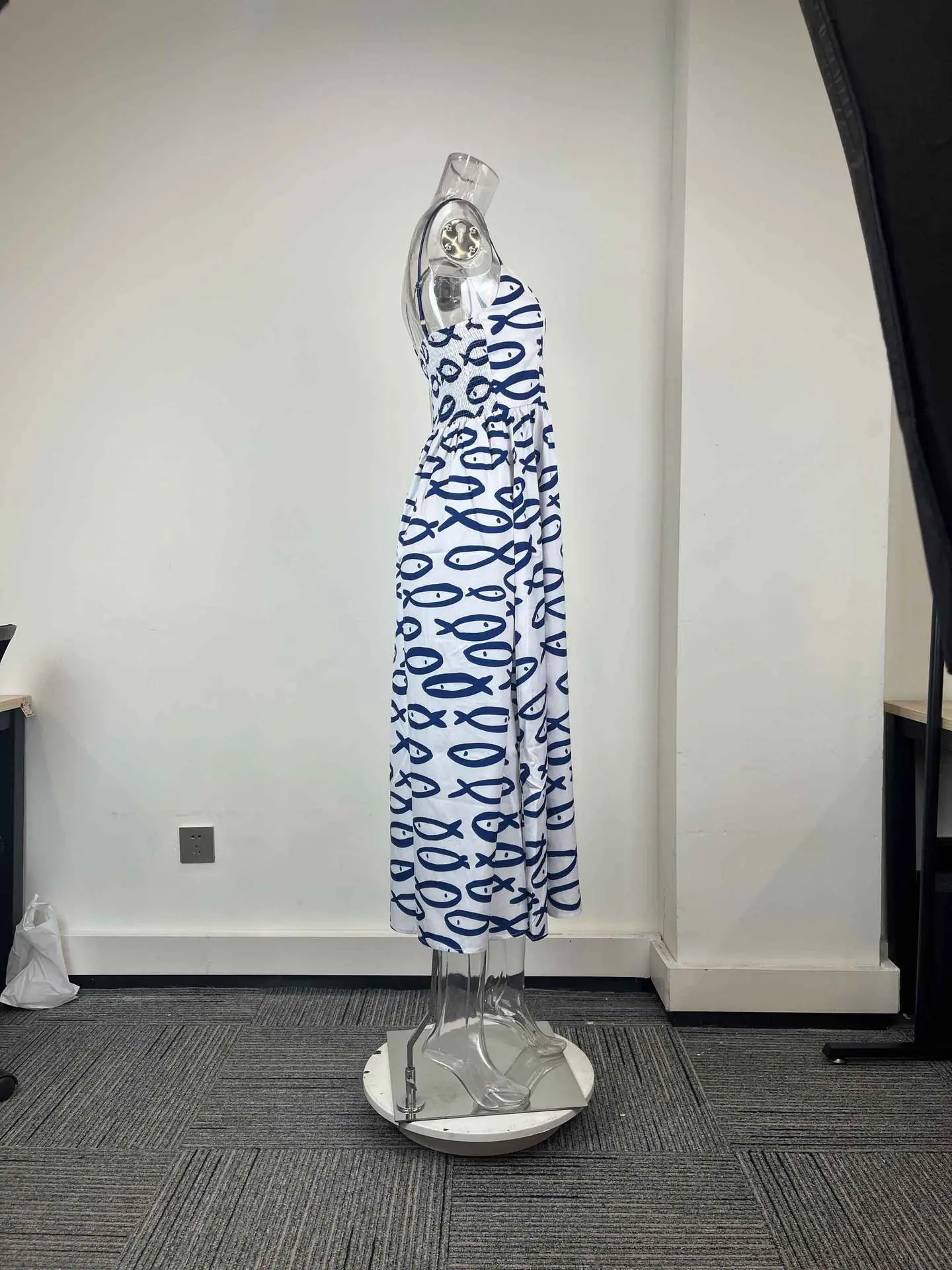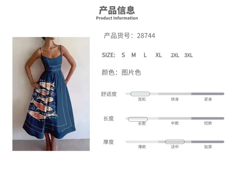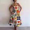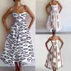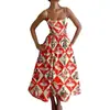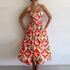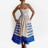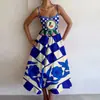 Amazon 2026 Primavera Nuevo Transfronterizo Moda Femenina Europea y Americana Vestido con Estampado Cintura Fruncida Tirantes Acampanados