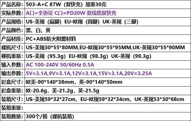 Salida detallada: Puerto A = protocolo completo / Puerto C = PD20W / carga rápida dual de doble línea