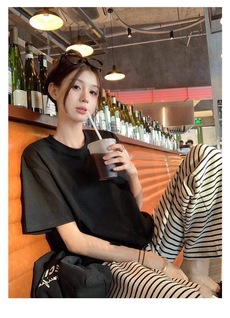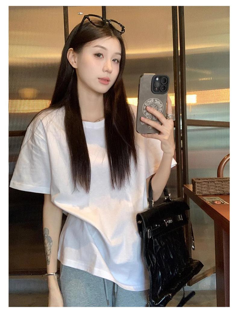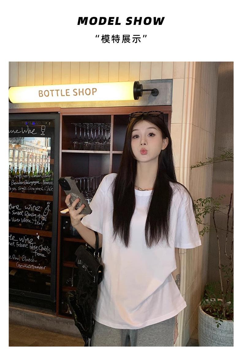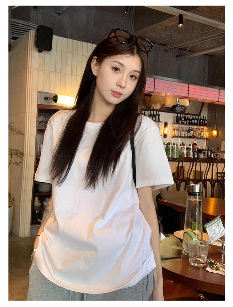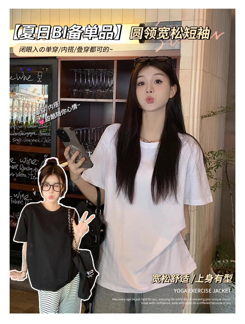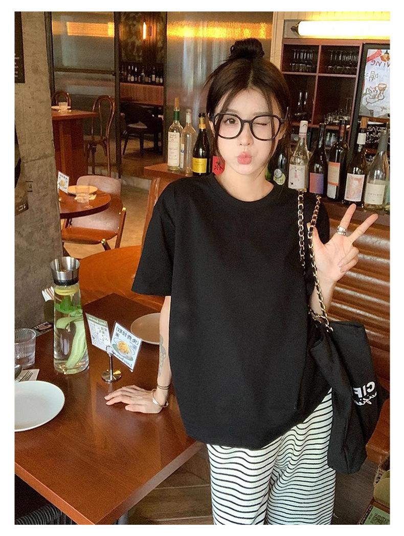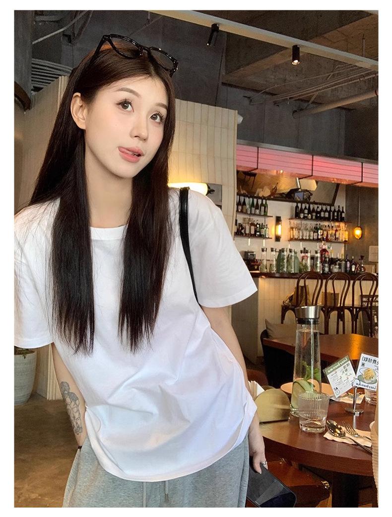 Playera de Algodón Puro de Manga Corta para Niñas Verano 2025 Nueva Color Puro Cuello Redondo Holgada Casual Moda Top Interior de Media Manga