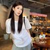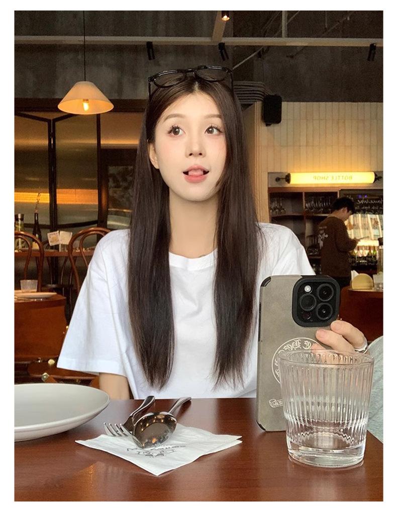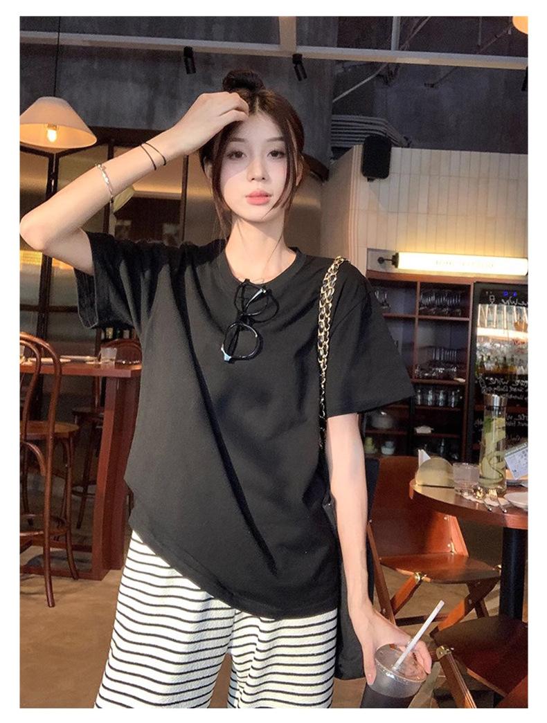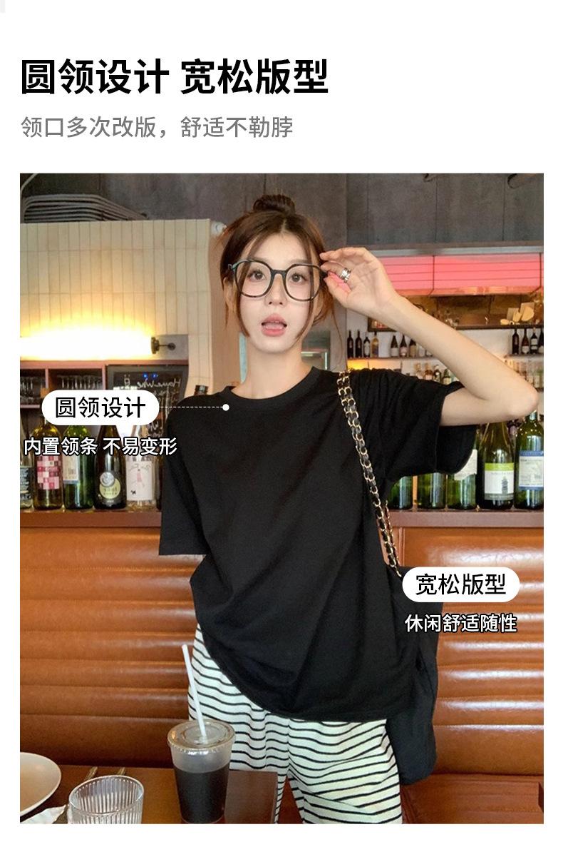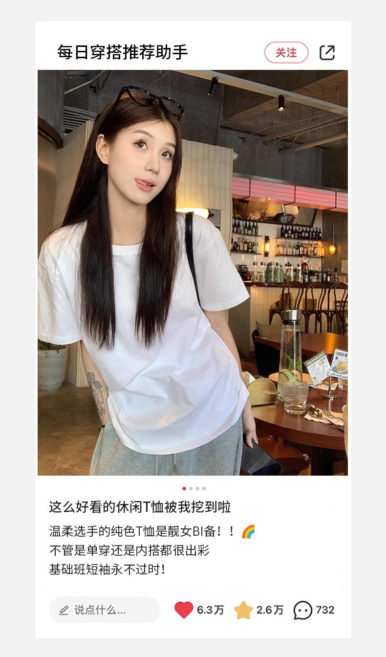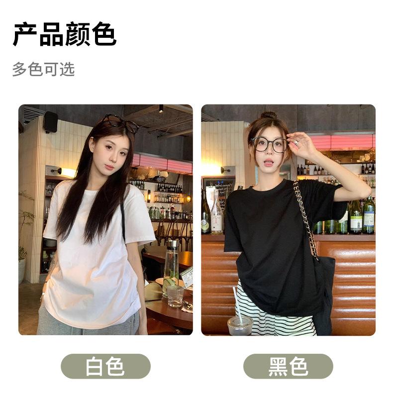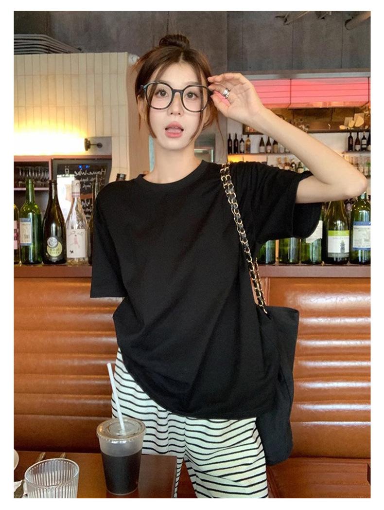 Playera de Algodón Puro de Manga Corta para Niñas Verano 2025 Nueva Color Puro Cuello Redondo Holgada Casual Moda Top Interior de Media Manga