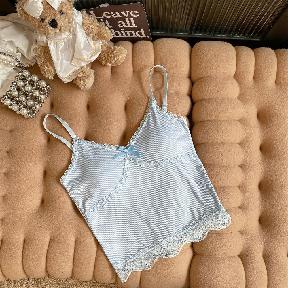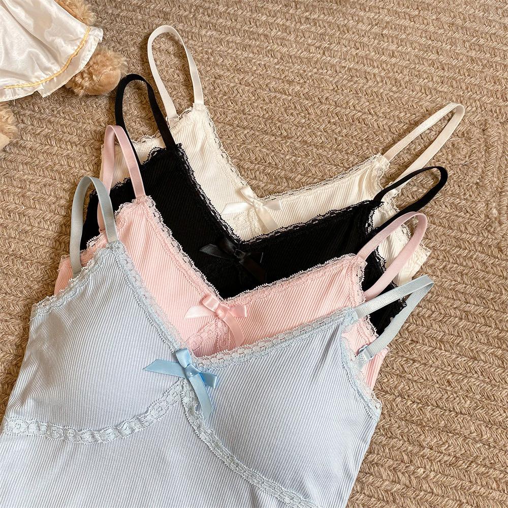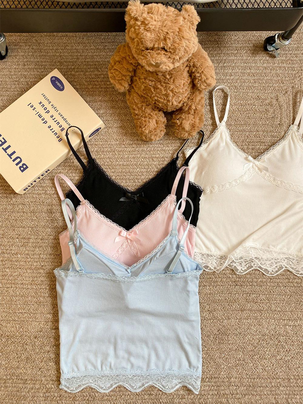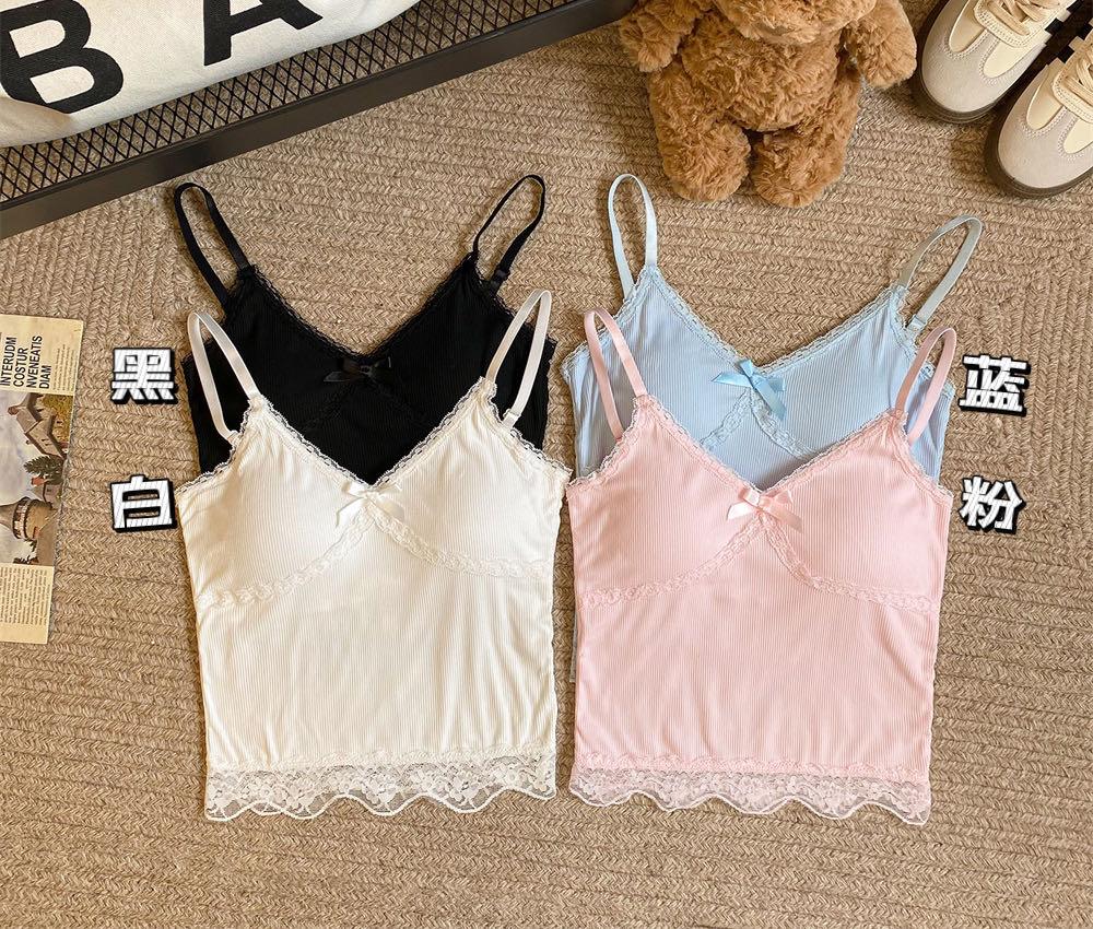 Compra Top Corto Puro de Verano para Combinar con Todo con Almohadilla en el Pecho Camiseta Interior Básica Camisola para Mujer con Costuras de Encaje de Lazo al por mayor en Joom.pro