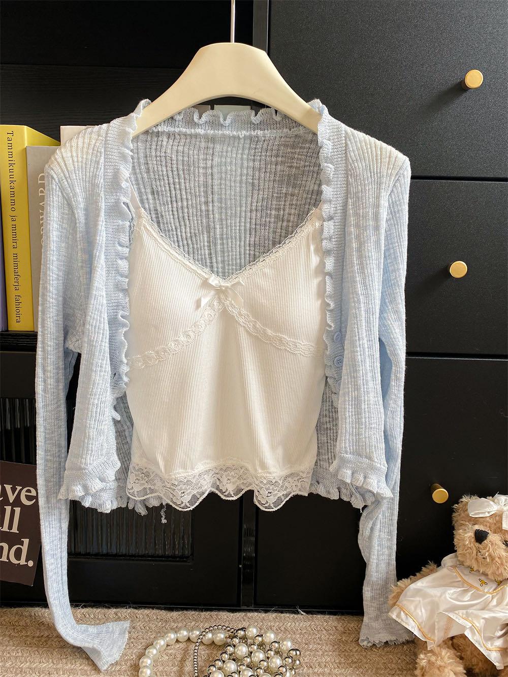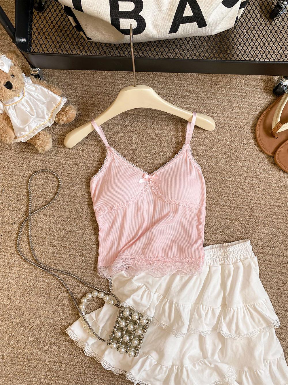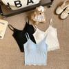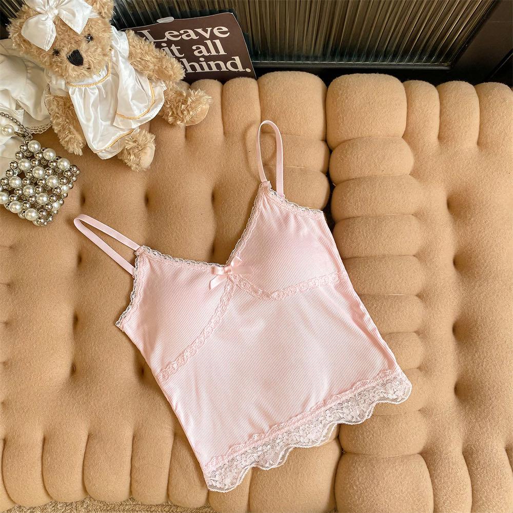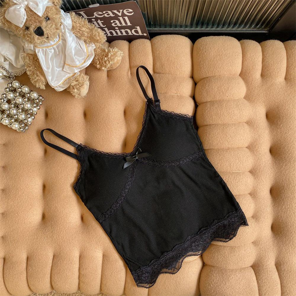 Compra Top Corto Puro de Verano para Combinar con Todo con Almohadilla en el Pecho Camiseta Interior Básica Camisola para Mujer con Costuras de Encaje de Lazo al por mayor en Joom.pro