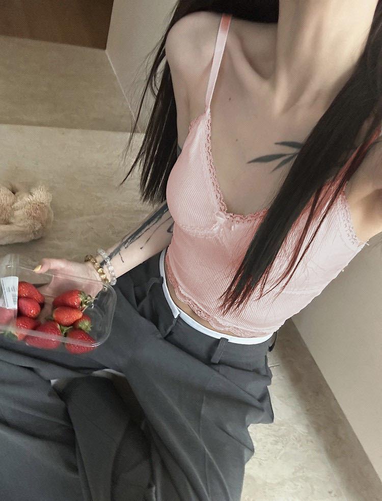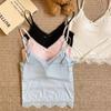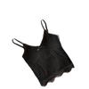 Top Corto Puro de Verano para Combinar con Todo con Almohadilla en el Pecho Camiseta Interior Básica Camisola para Mujer con Costuras de Encaje de Lazo