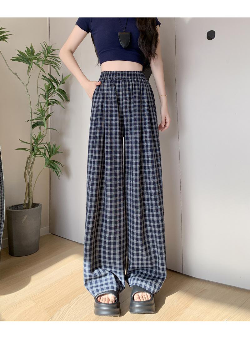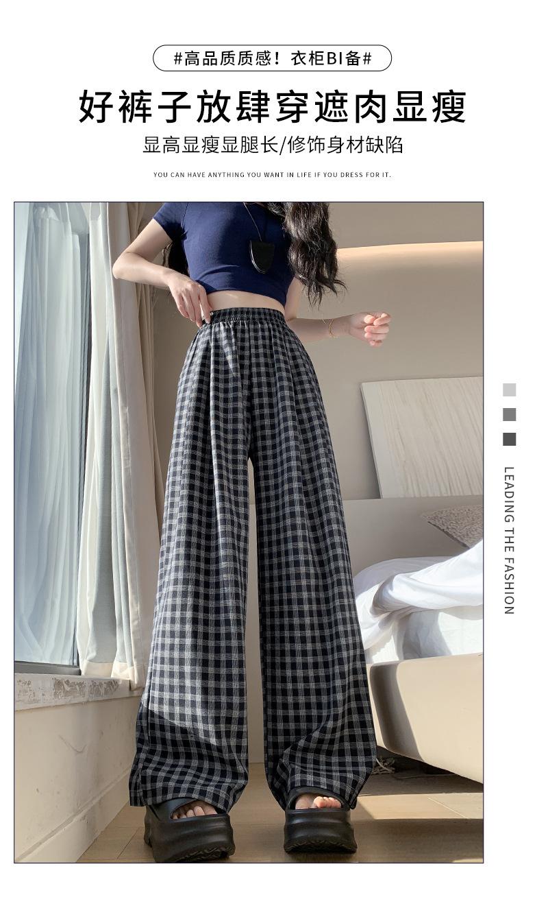 Pantalones Holgados de Pierna Ancha Estilo Retro Perezoso Verano Delgados de Cintura Alta Sueltos Versátiles Adelgazantes Rectos Casuales para Caminar