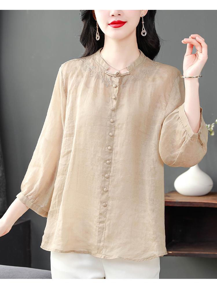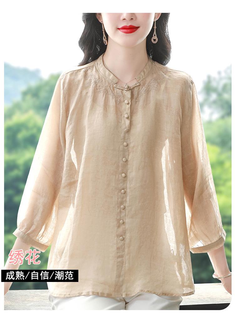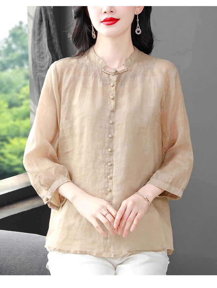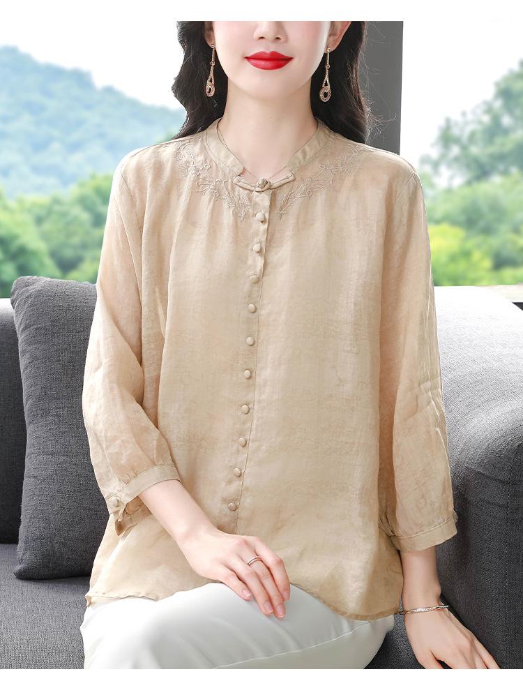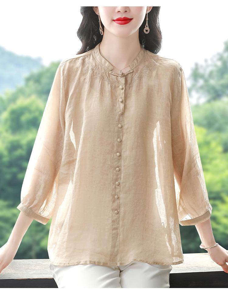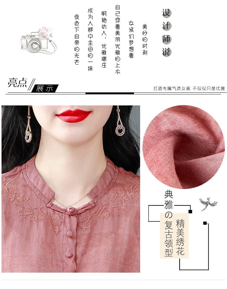2024 Nuevo Tops Holgados de Talla Grande para Mujer Camisa Bordada Sensación Versátil Algodón y Lino Temperamento Camisa para Ir al Trabajo Trendy