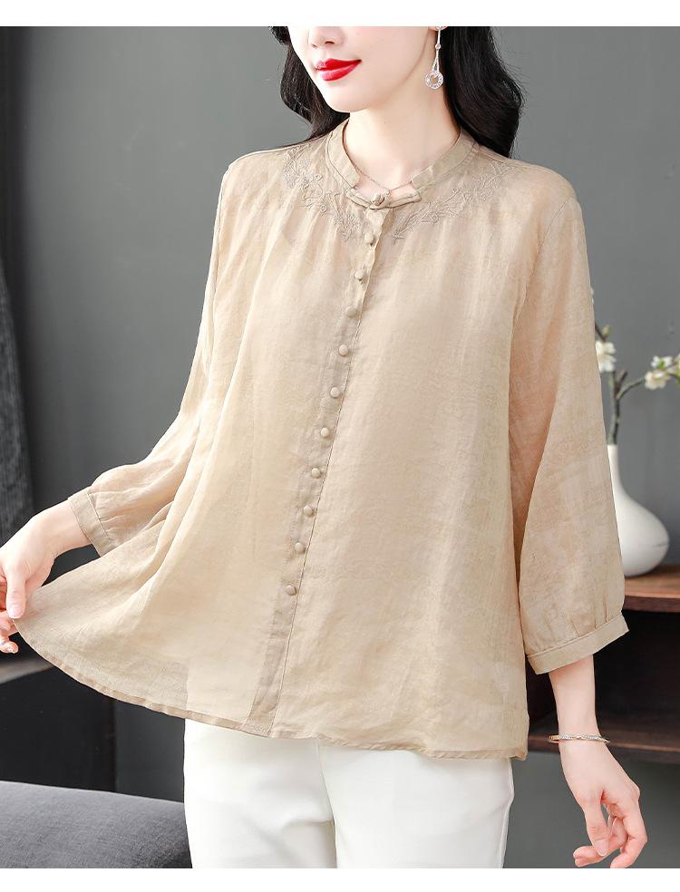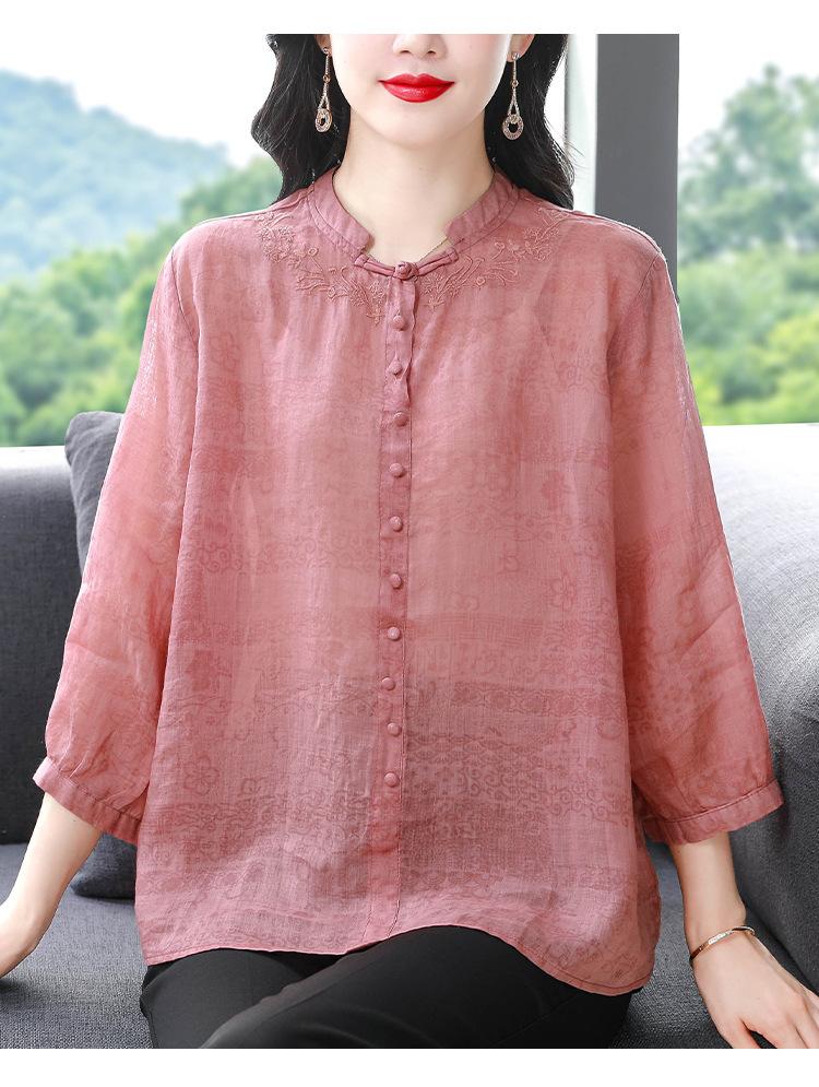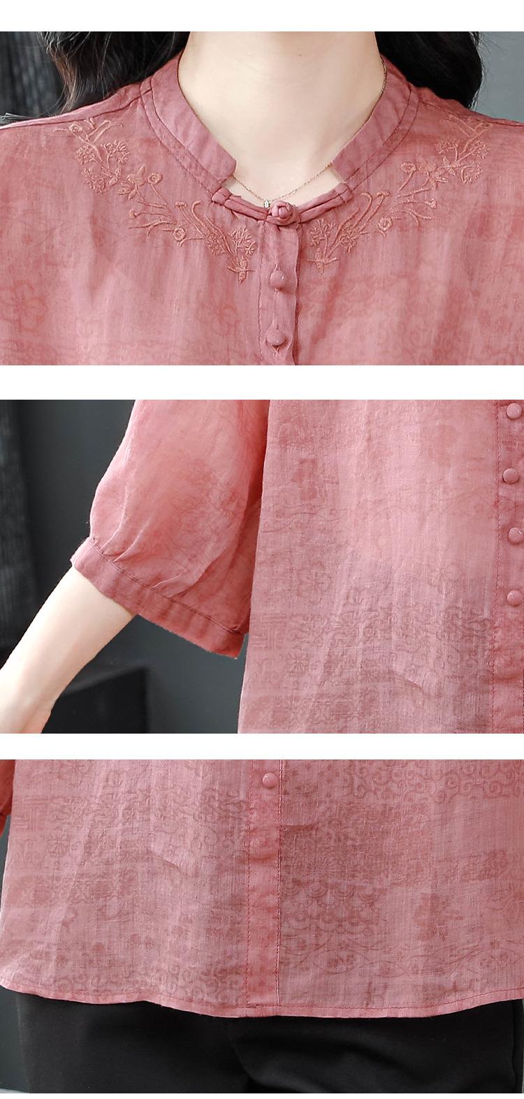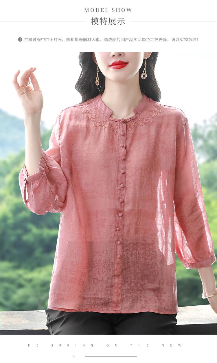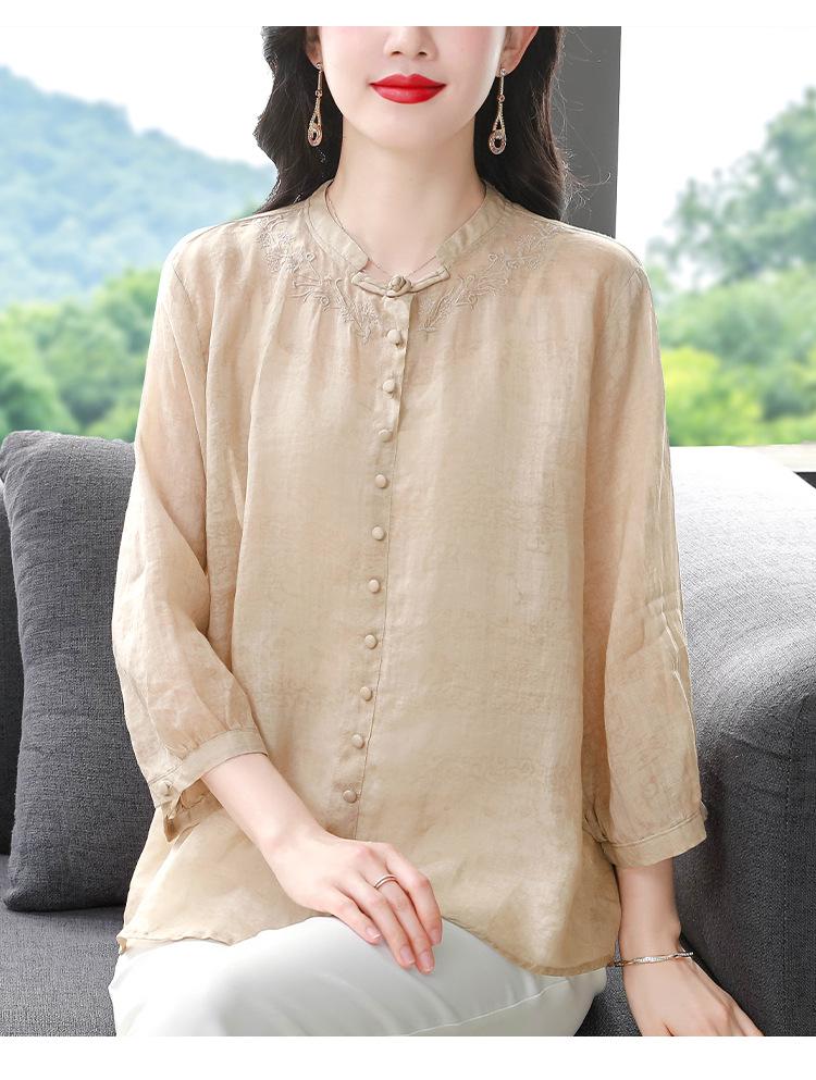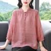 2024 Nuevo Tops Holgados de Talla Grande para Mujer Camisa Bordada Sensación Versátil Algodón y Lino Temperamento Camisa para Ir al Trabajo Trendy
