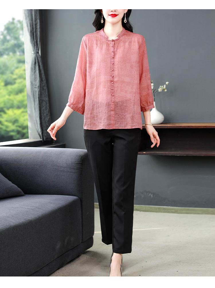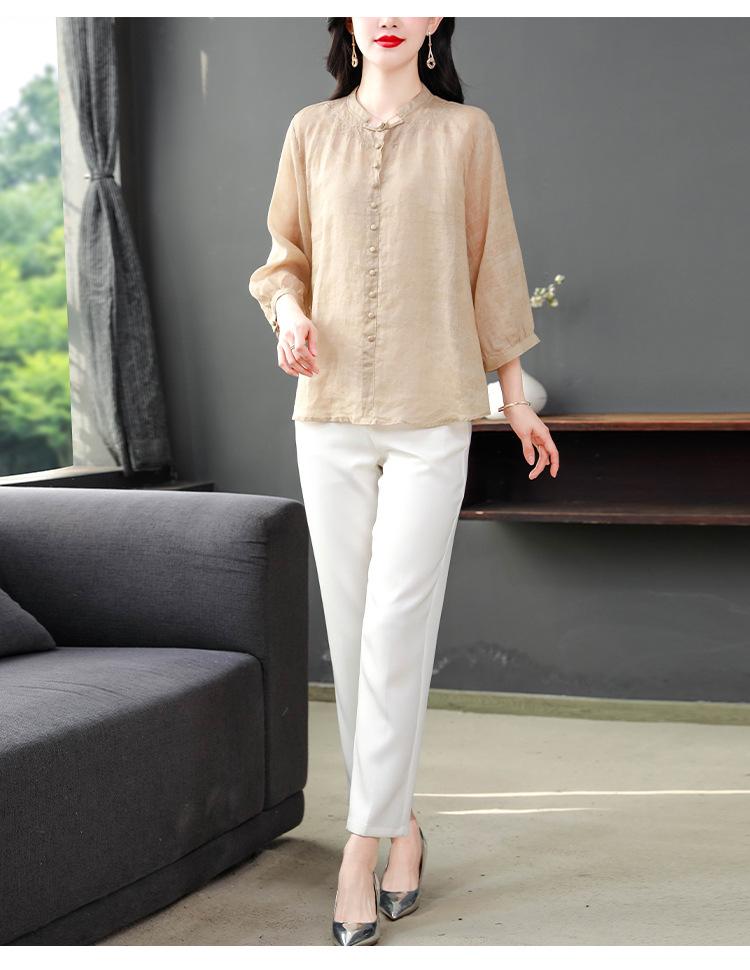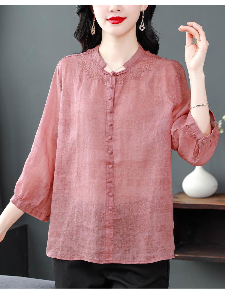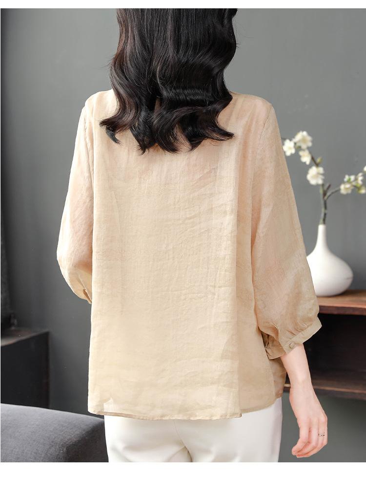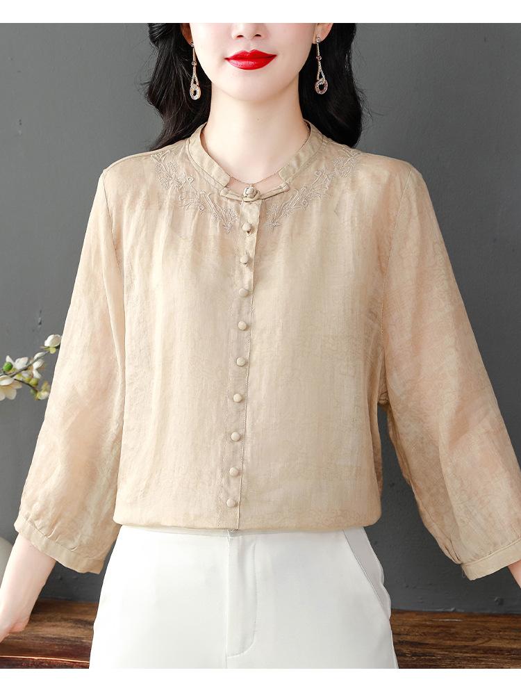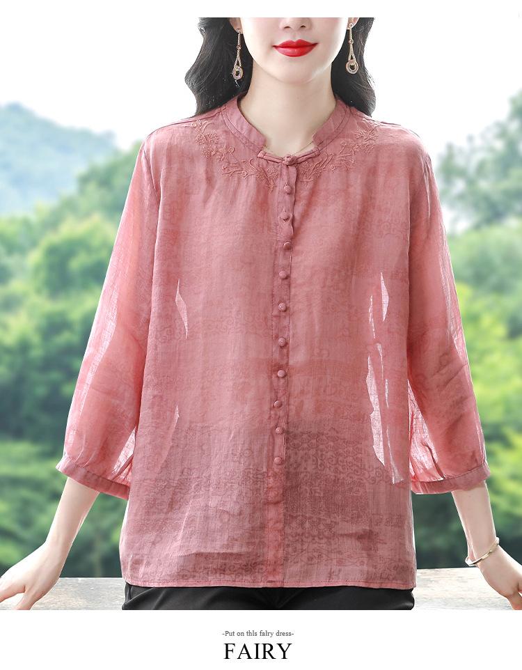2024 Nuevo Tops Holgados de Talla Grande para Mujer Camisa Bordada Sensación Versátil Algodón y Lino Temperamento Camisa para Ir al Trabajo Trendy