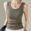 Camisola Blanca para Mujer Verano 2025 Nuevo Estilo Almohadilla en el Pecho Base Interior Spice Girl Ropa Exterior Talla Extra Top sin Mangas