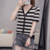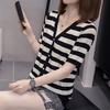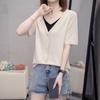 Compra Camisa de Moda de Talla Grande para Mujer con Cuello en V de Imitación de Dos Piezas para Mujer Verano Nuevo Aspecto Adelgazante y Rayas que Reducen la Edad Top de Punto de Seda de Hielo al por mayor en Joom.pro