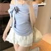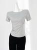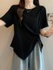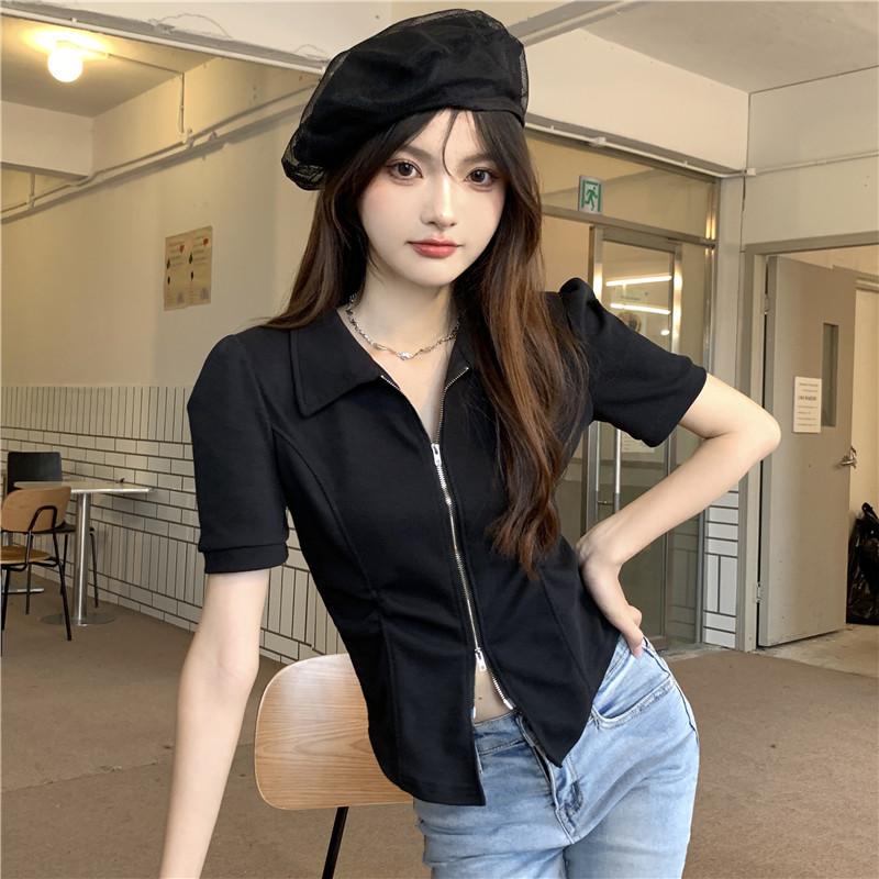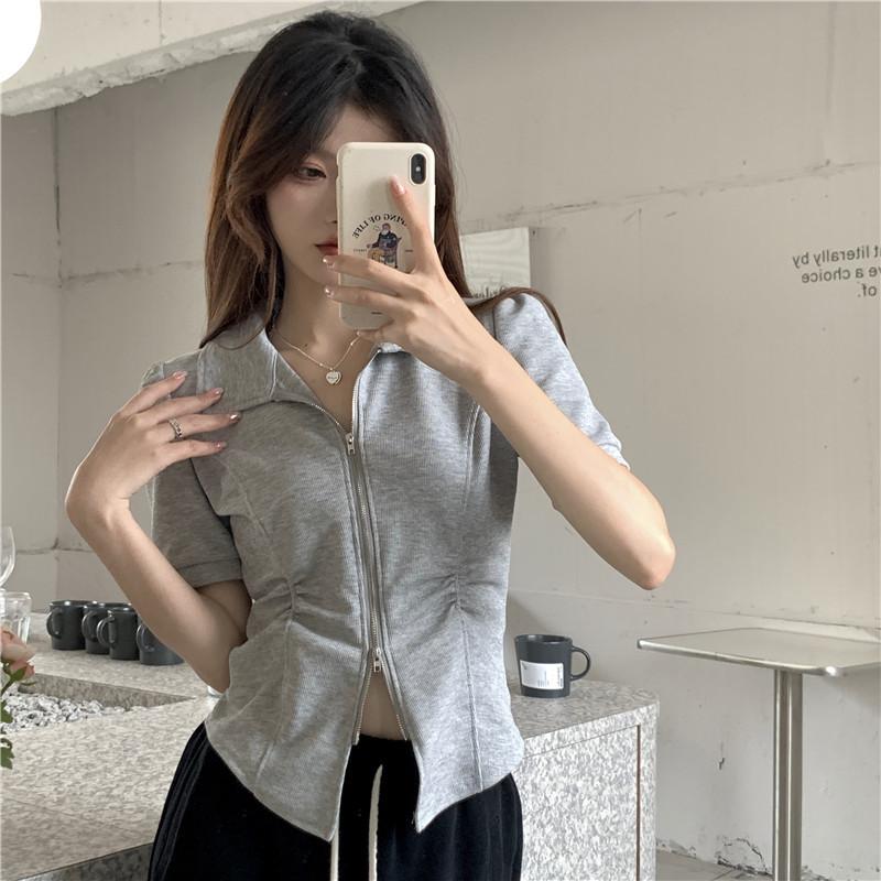 Talla grande Mujer chica gordita Irregular Slim Look Camiseta Hombro Descubierto para Mujer Ligeramente Gordita Doble Cremallera Manga Corta Top Cubre Vientre para Verano