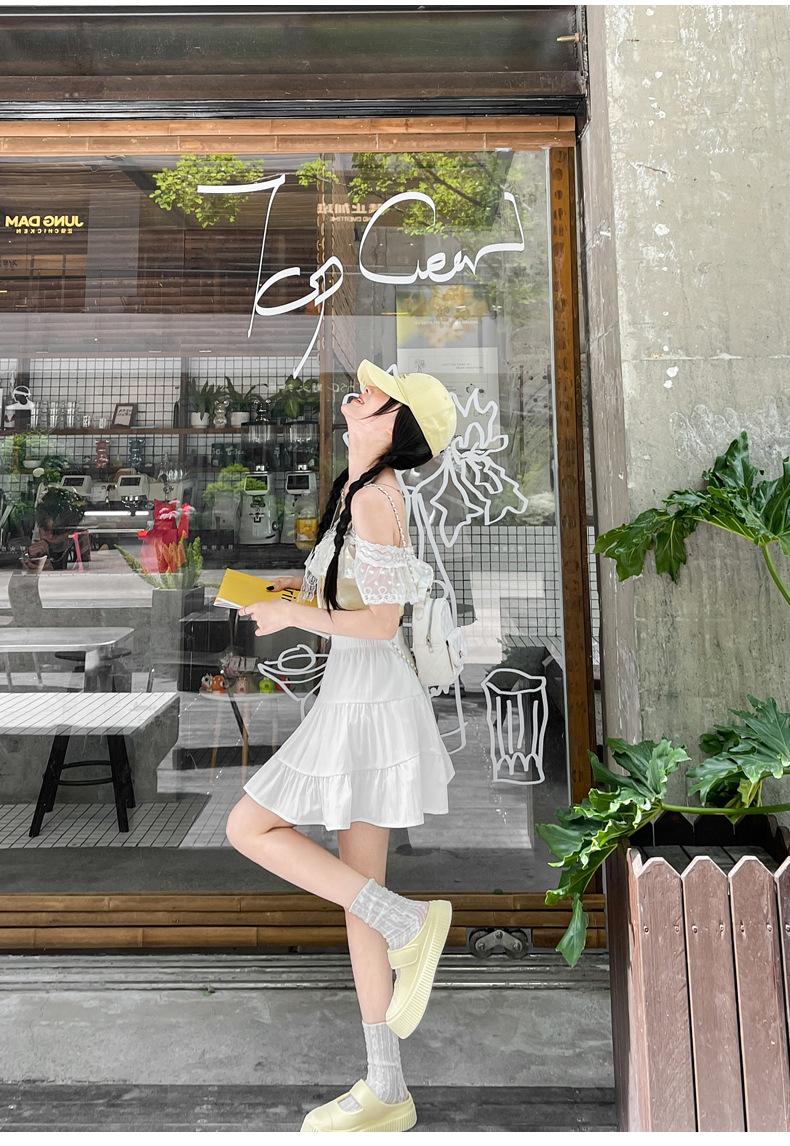 Falda Tutú Blanca Estilo Ballet Falda Corta de Verano para Mujer Falda Dulce Falda Línea A Falda Pastel