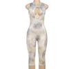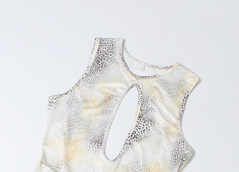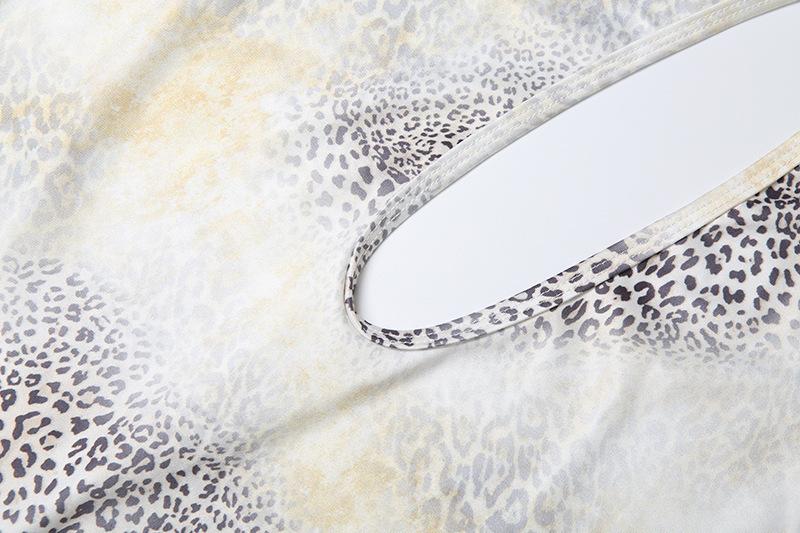 Europeo y Americano 2025 Nuevo Verano para Mujer Sexy Picante Sin Mangas Cuello Redondo Estampado de Leopardo Calado Grande Espalda Descubierta Pantalones