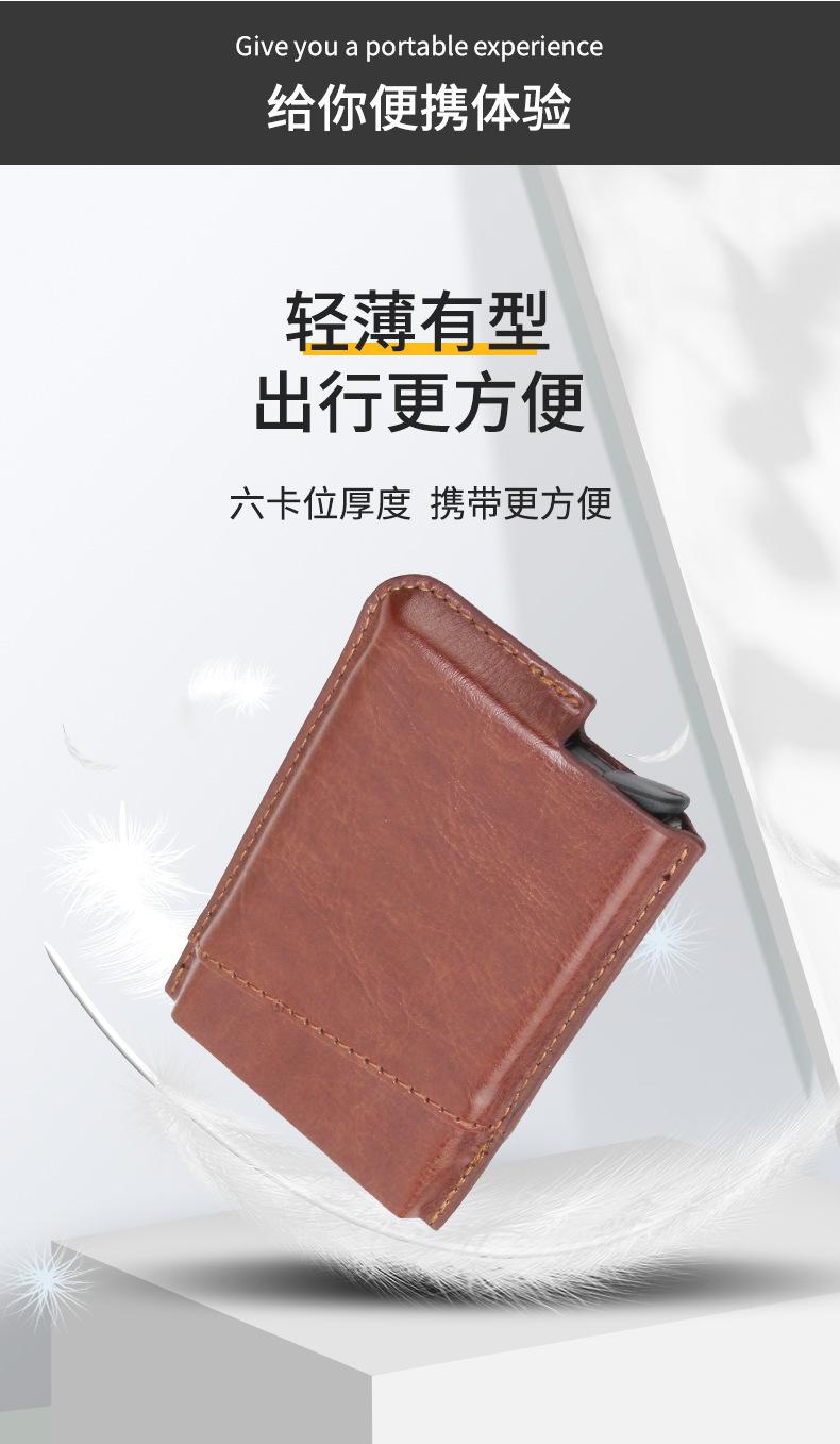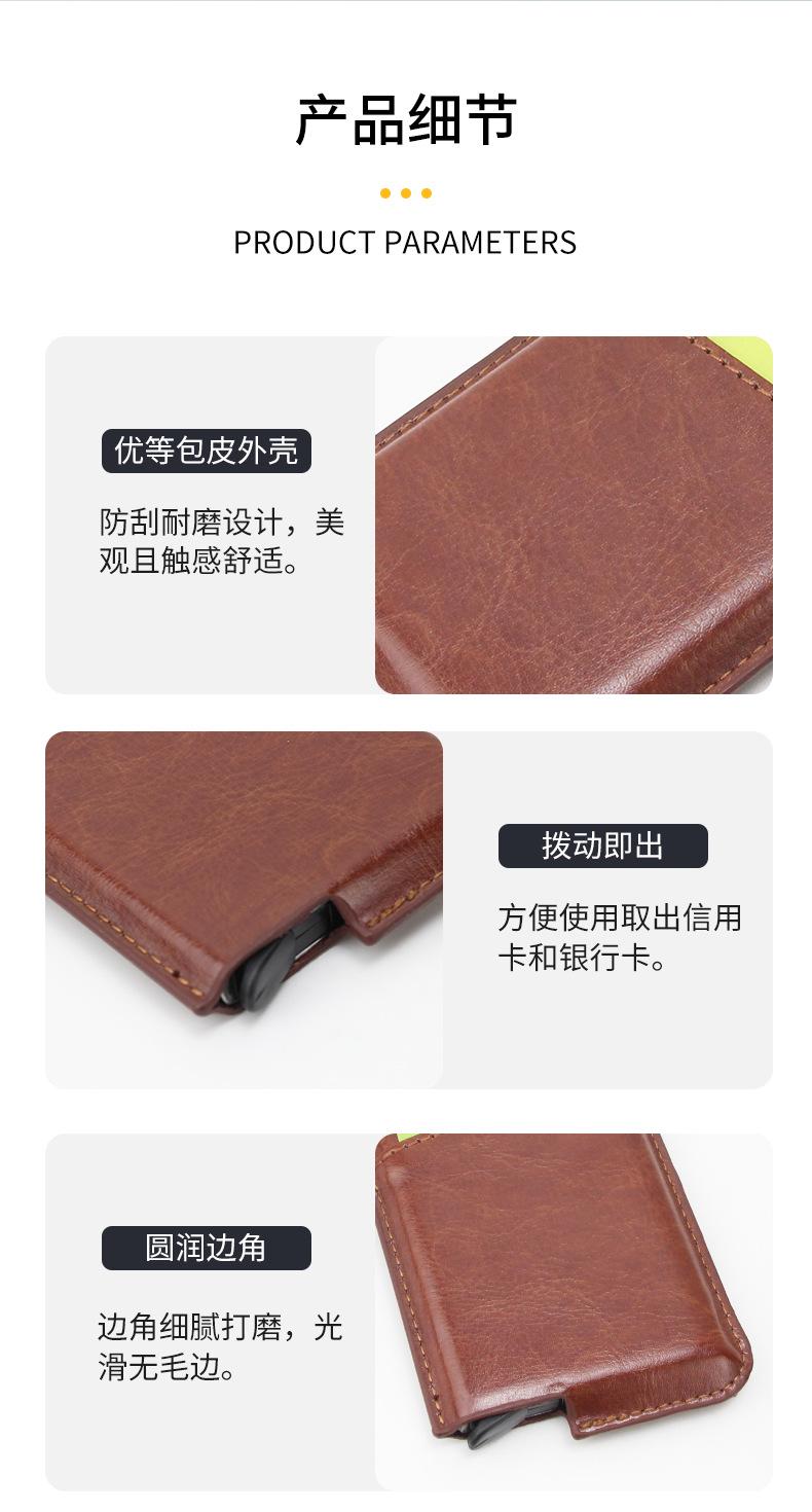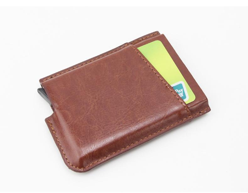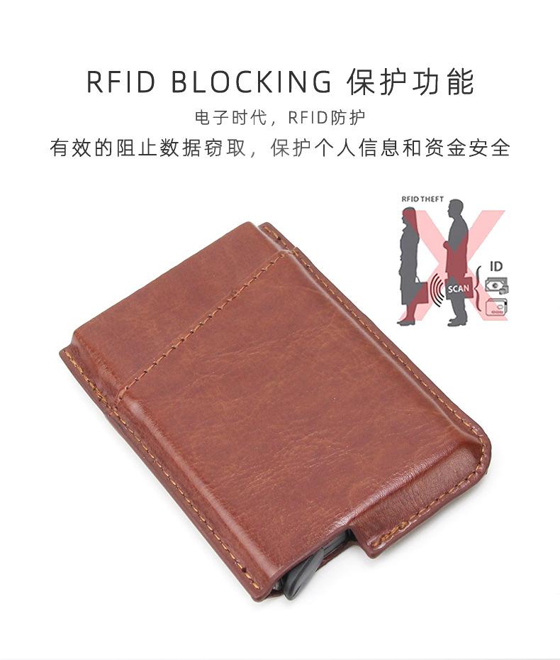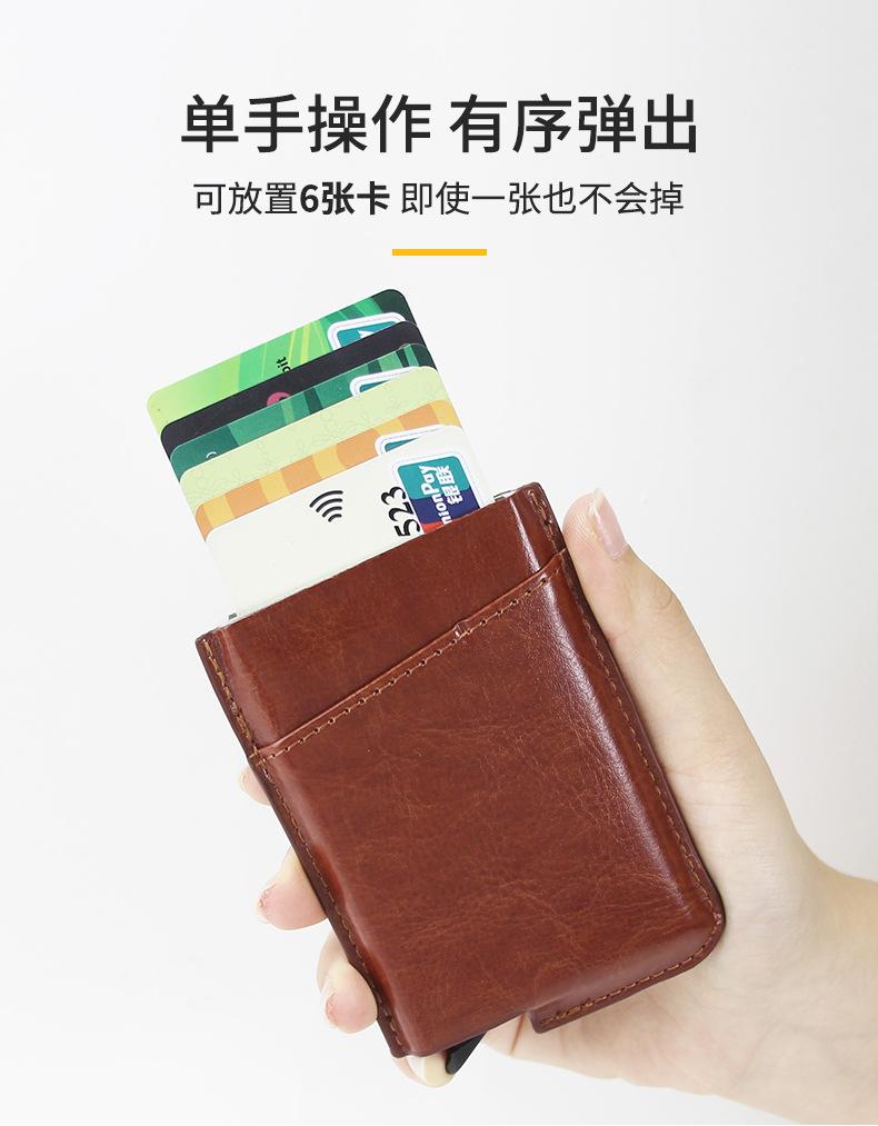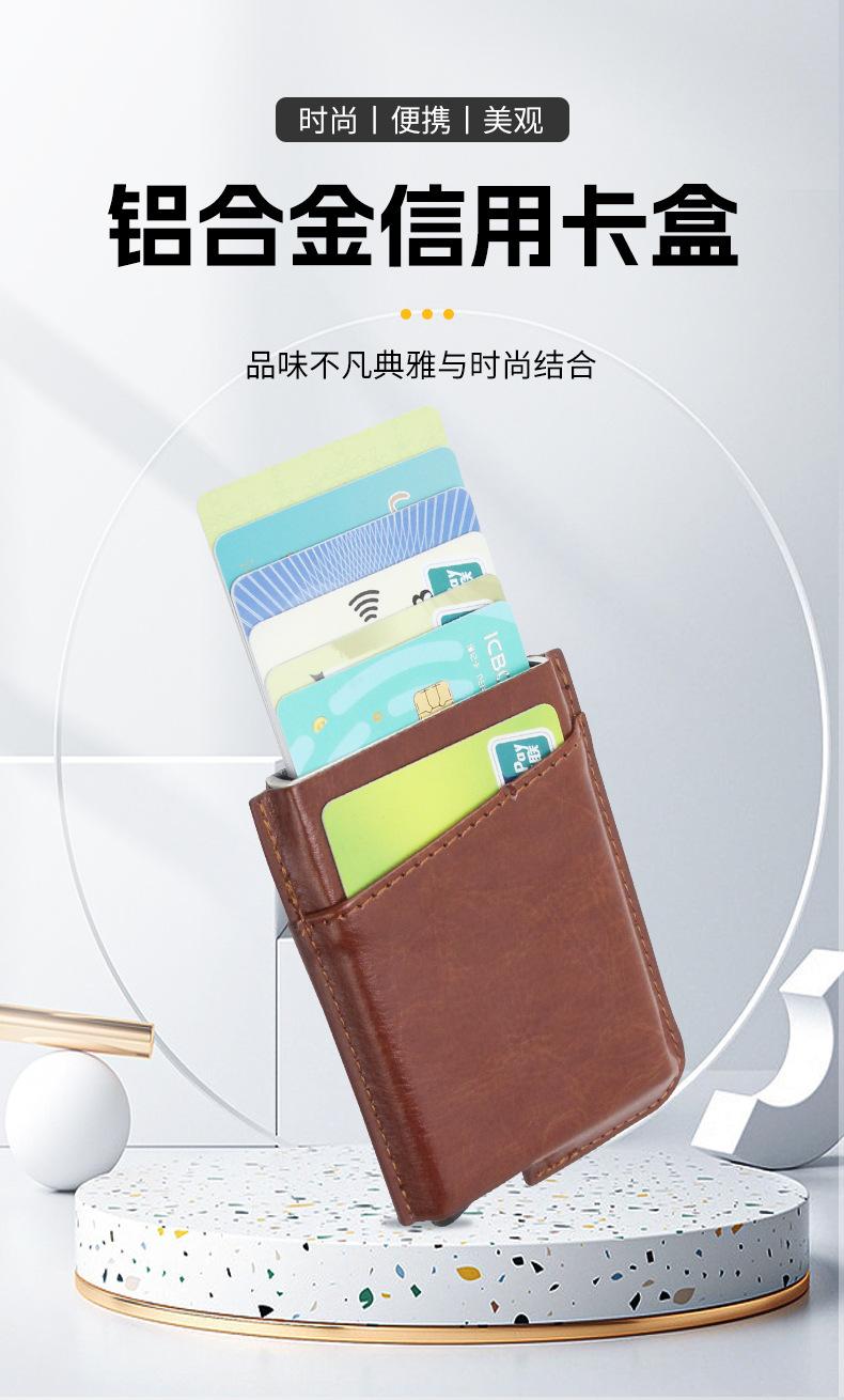 Venta al por mayor estuche automático emergente de fondo con botón para tarjetas de crédito, tarjetero, metal, aluminio, tarjetero, cepillo antirrobo, tarjetero antimagnético RFID