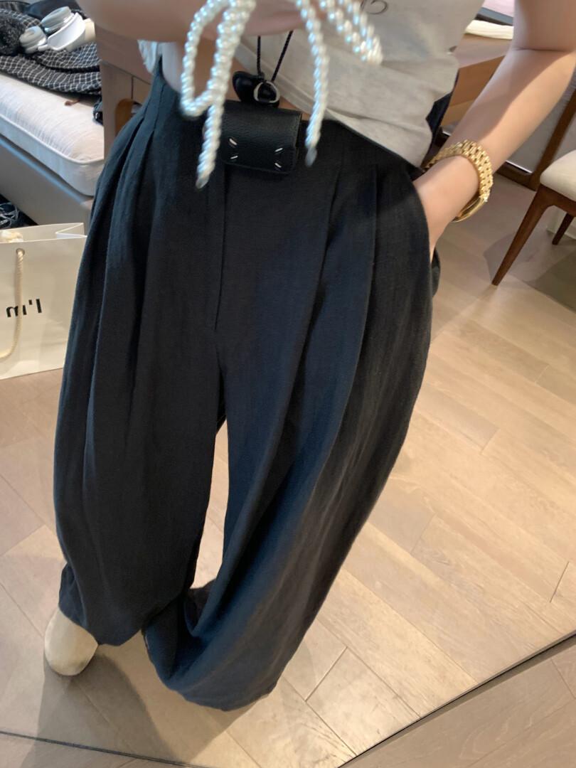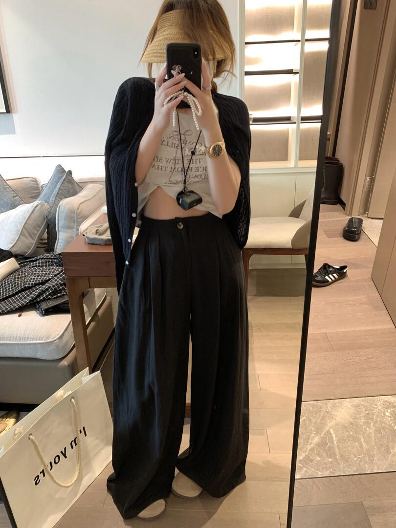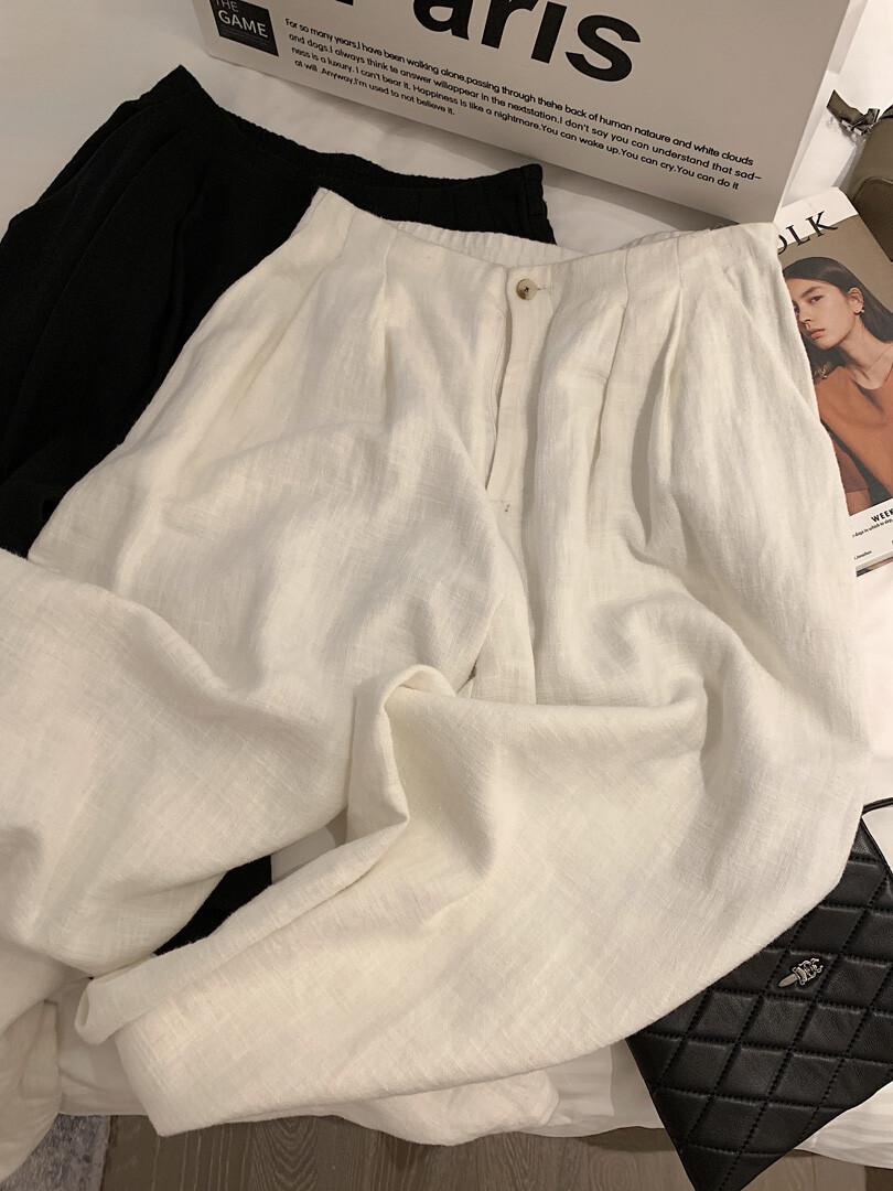 Pantalones de lino de talle alto y pierna ancha para mujer 2025 verano nuevo suelto, drapeado, estilo perezoso, pierna recta, delgado, casual, hasta el suelo