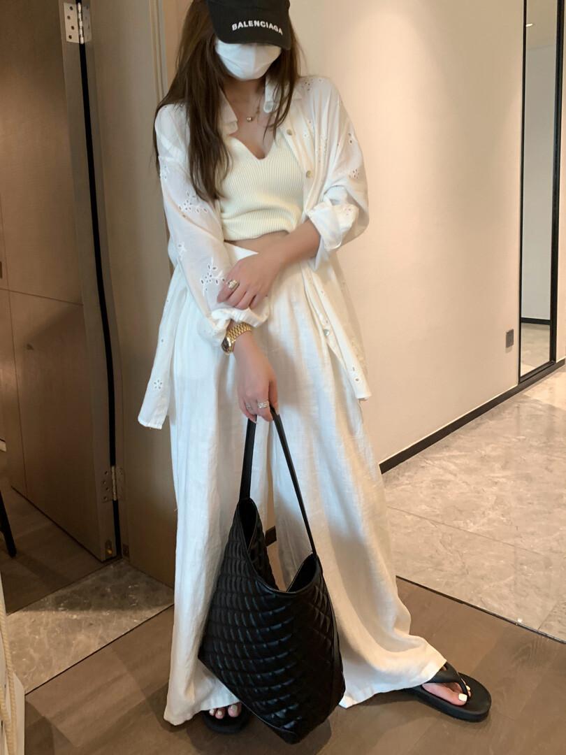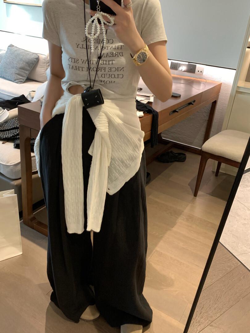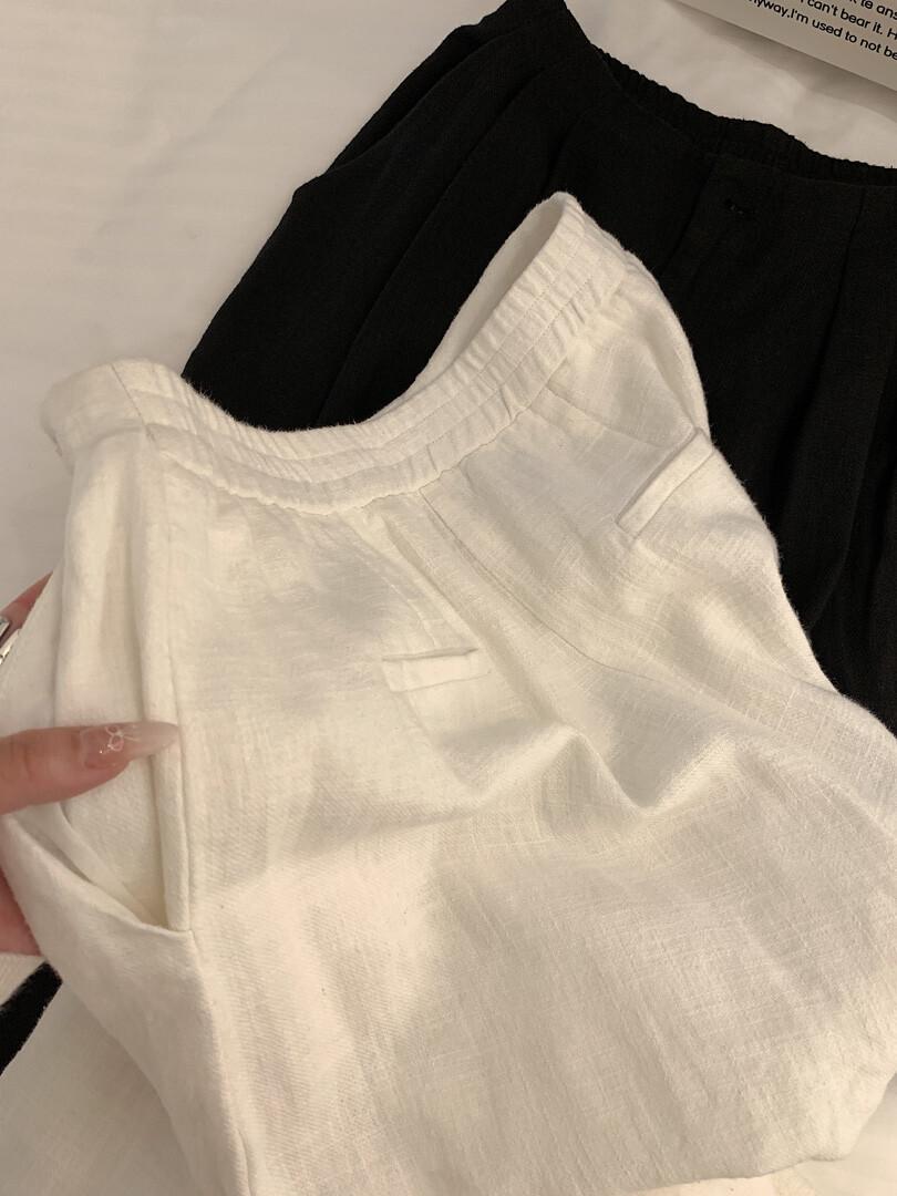 Pantalones de Lino Delgados de Cintura Alta y Pierna Ancha para Mujer 2025 Verano Nuevo Estilo Holgado de Dosificación Perezosa Pantalones Largos Rectos