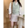 Camisa blanca sencilla de cuello redondo con cordones y manga larga para mujer, primavera 2025, estilo coreano, holgada, de algodón, combinable.