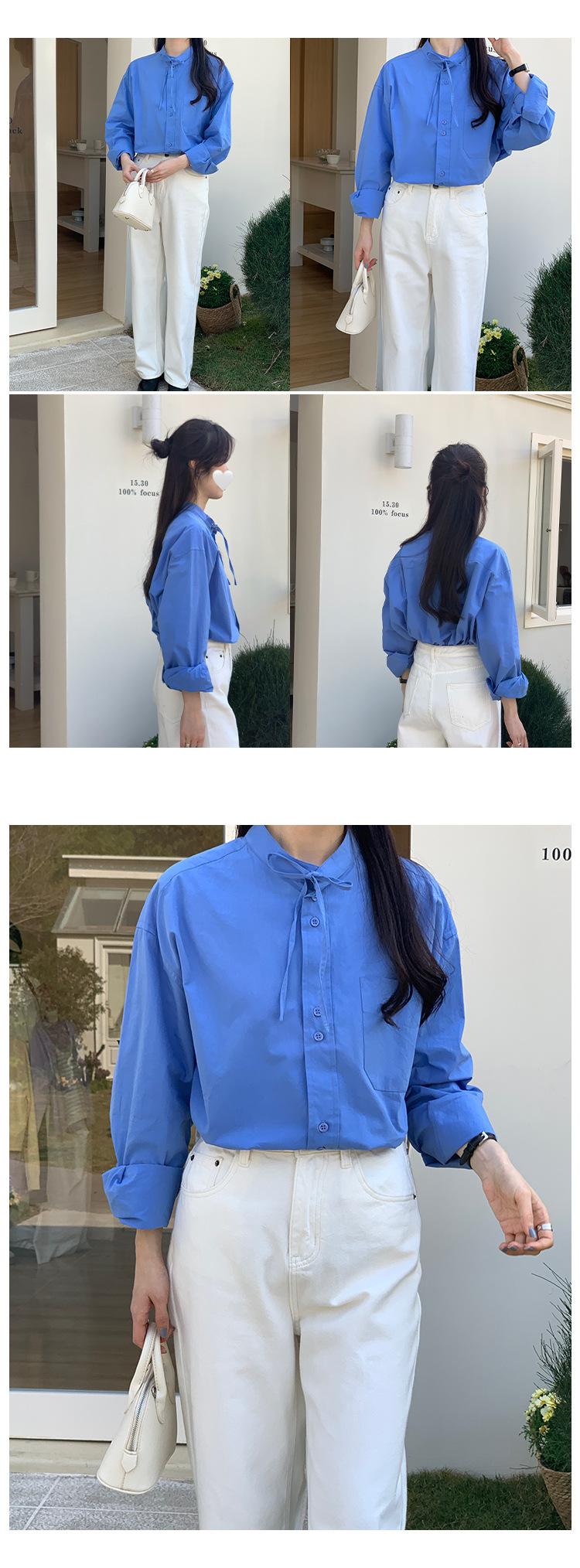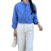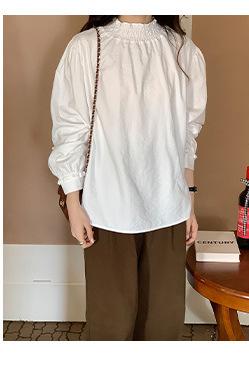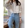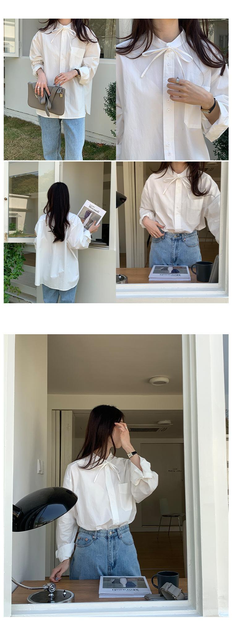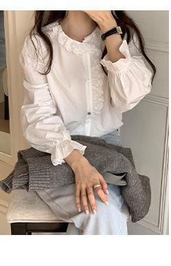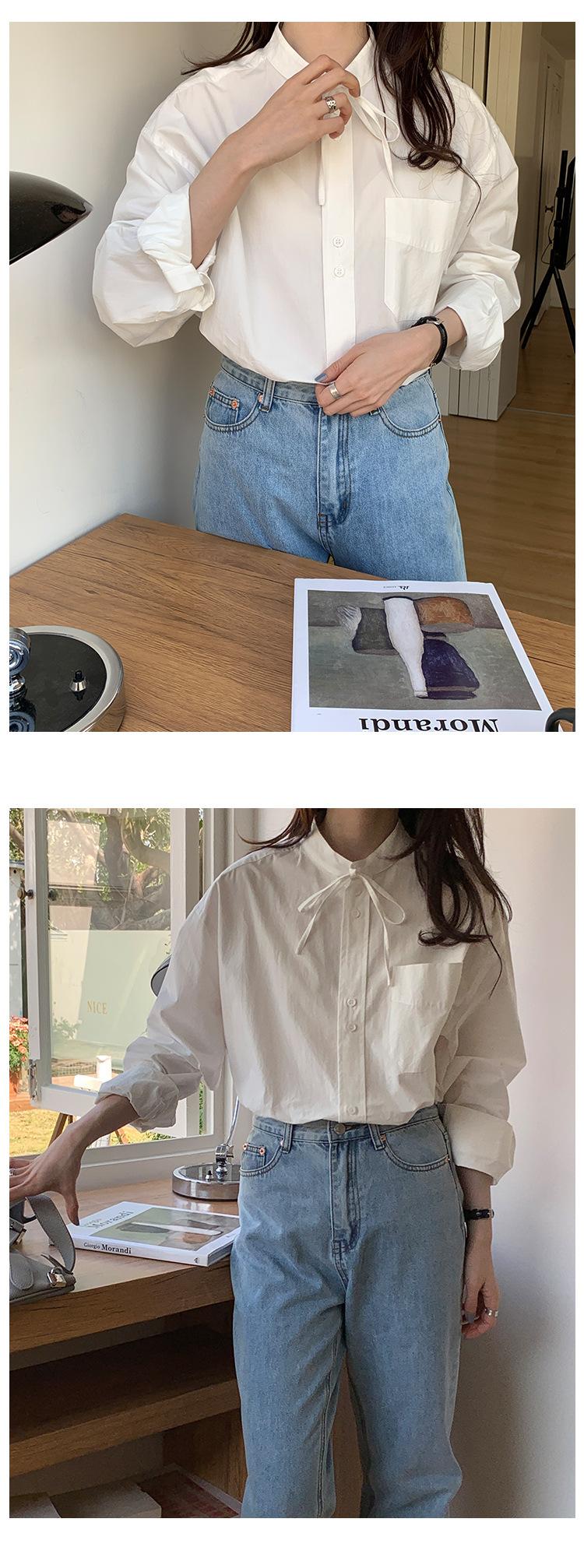 Compra Camisa blanca sencilla de cuello redondo con cordones y manga larga para mujer, primavera 2025, estilo coreano, holgada, de algodón, combinable. al por mayor en Joom.pro
