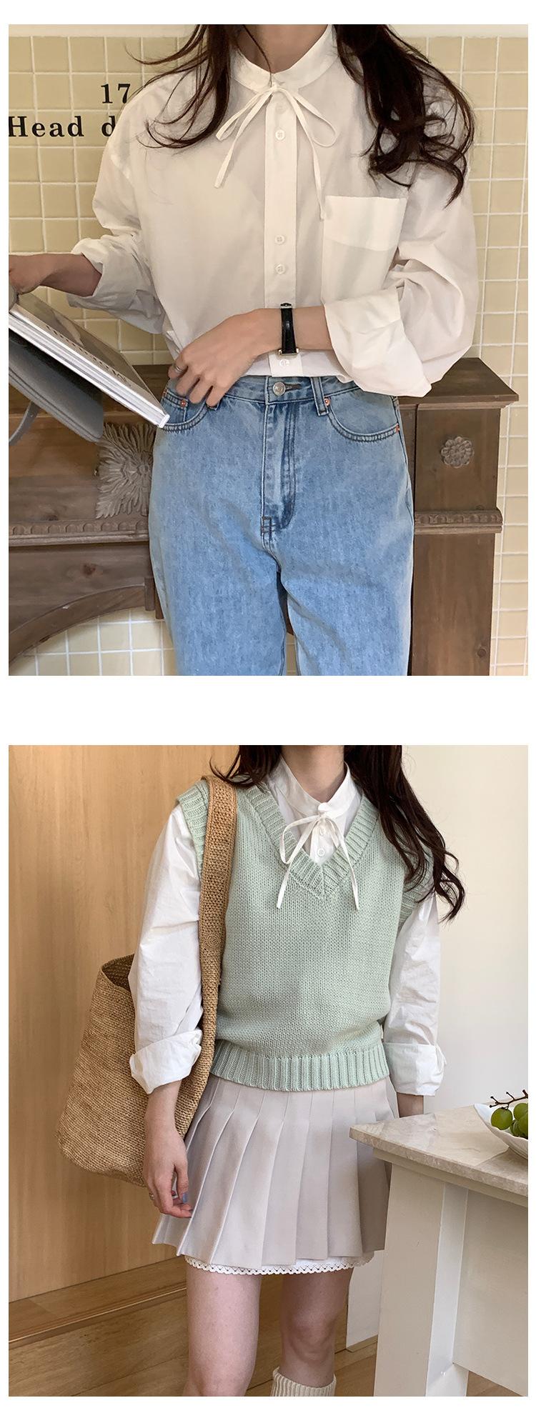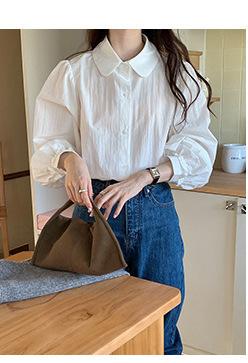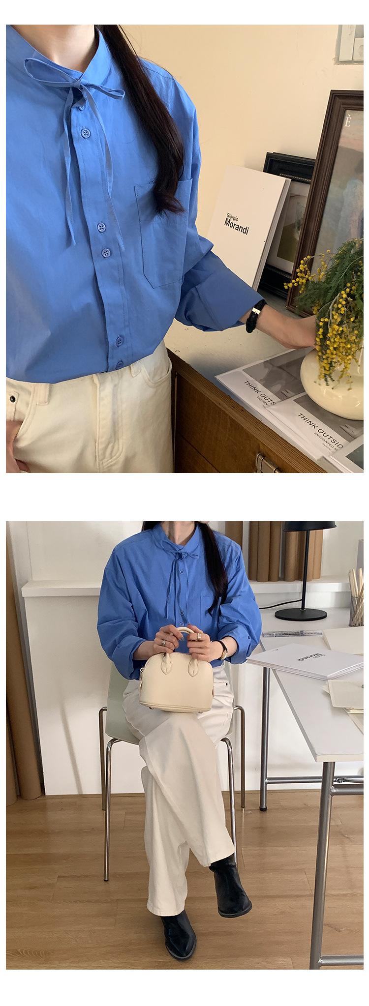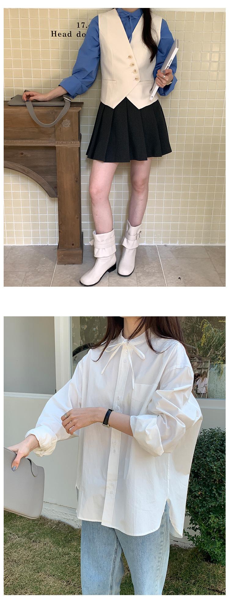 Compra Camisa blanca sencilla de cuello redondo con cordones y manga larga para mujer, primavera 2025, estilo coreano, holgada, de algodón, combinable. al por mayor en Joom.pro