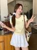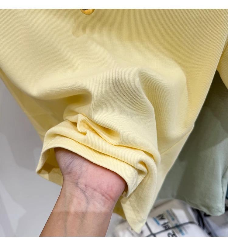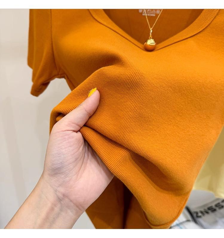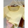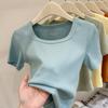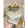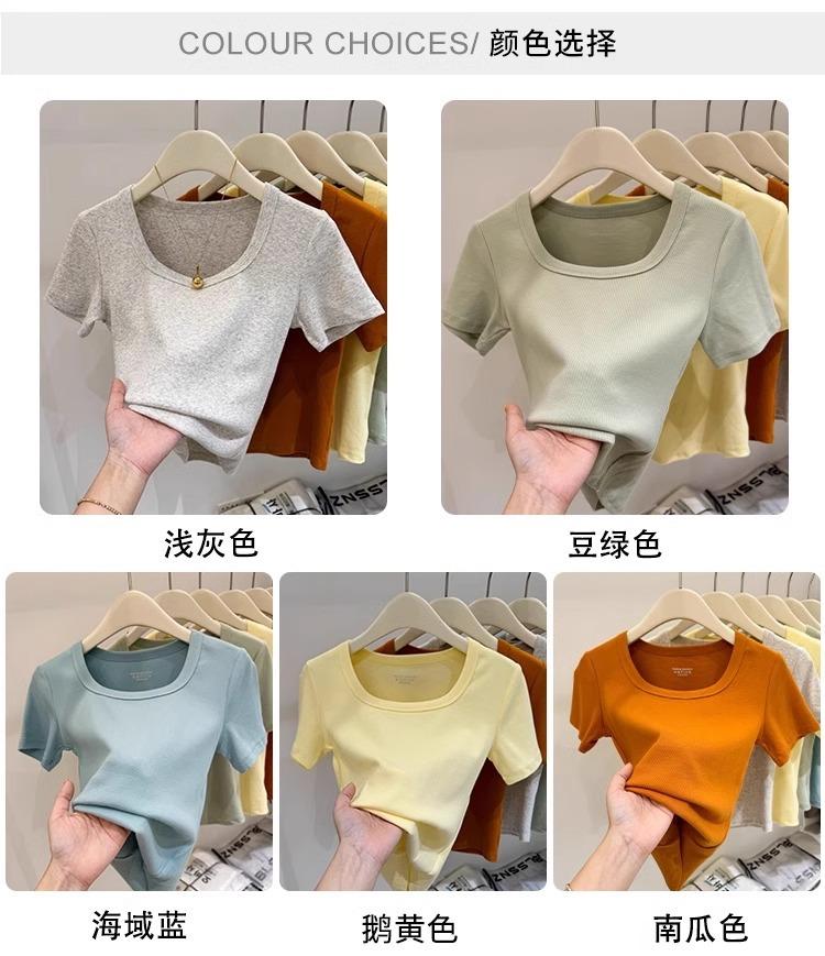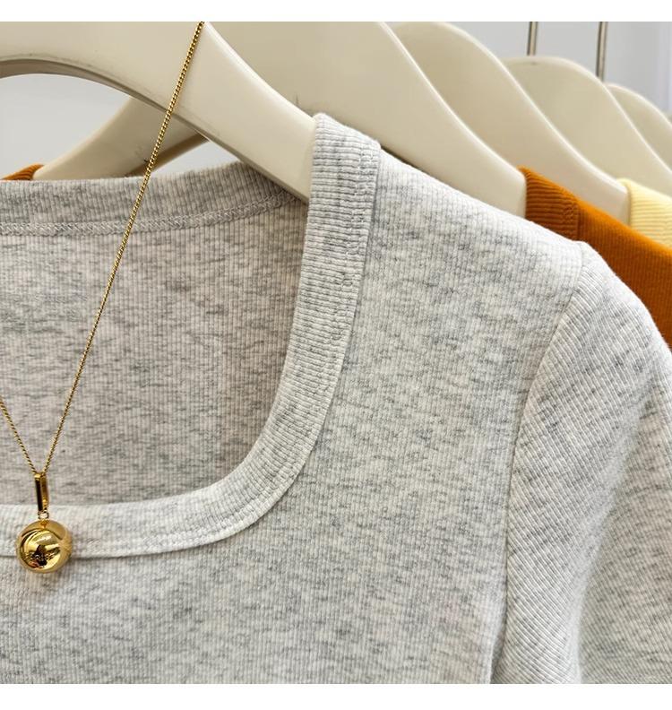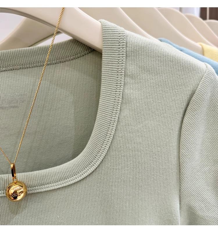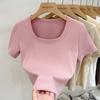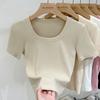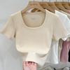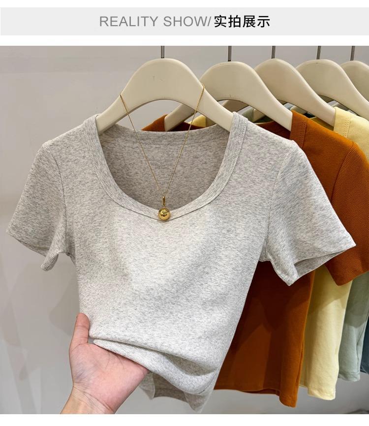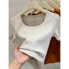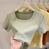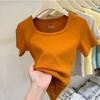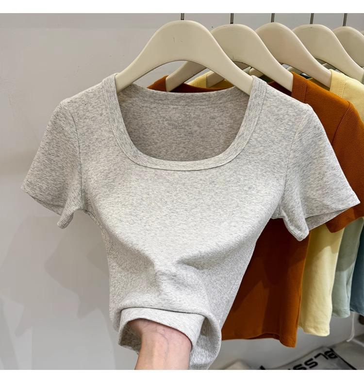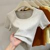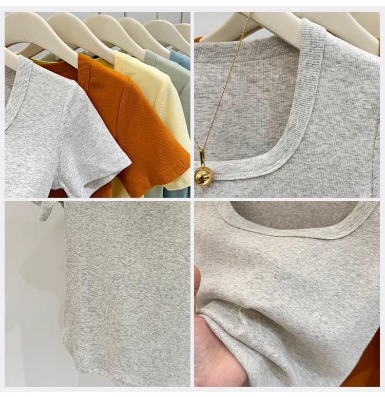 Playera Europea de Cuello Redondo Hombro Derecho para Mujer 2025 Nueva Ajustada Top Corto Manga Corta Manga Corta Trendy A3417
