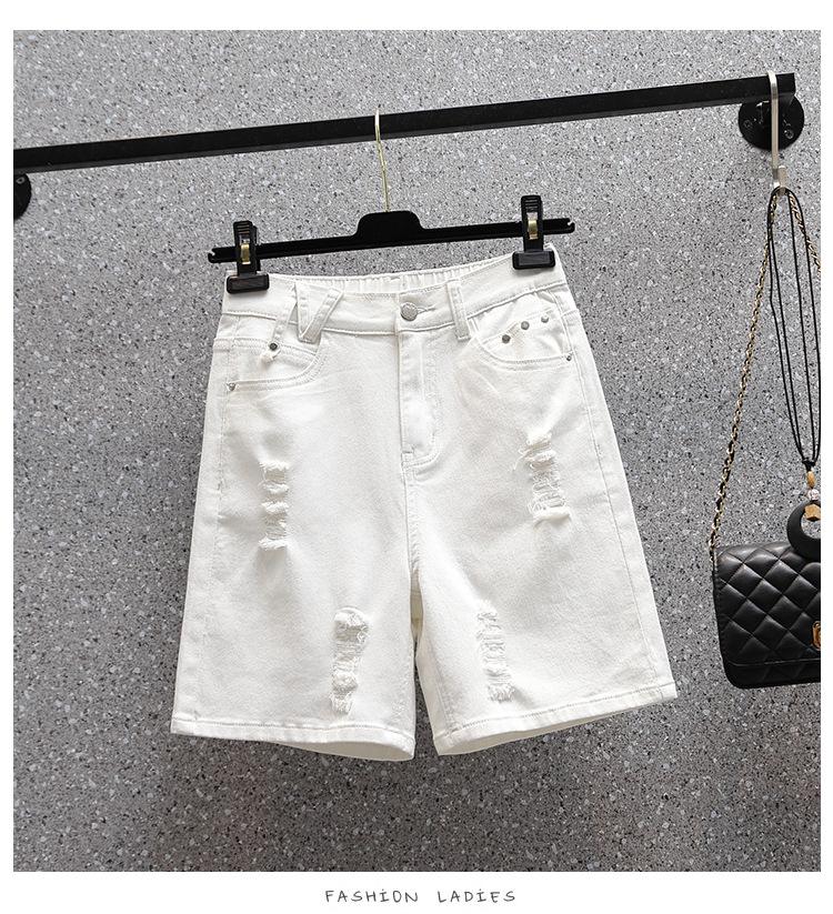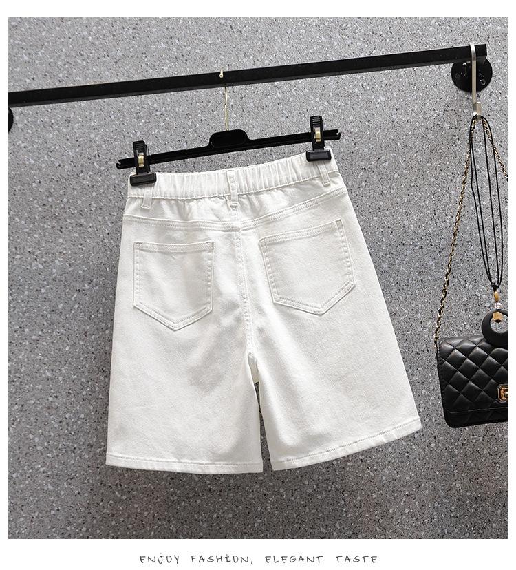 Shorts de mezclilla elásticos de verano para mujer de talla grande, pantalones de pierna ancha holgados delgados de cintura alta para chica gordita, una generación de cabello