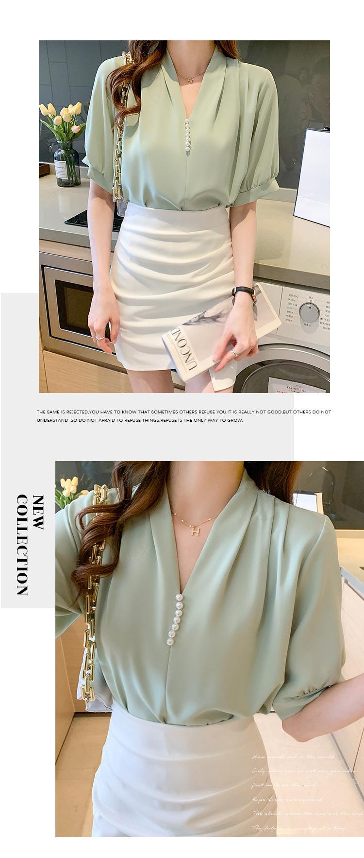 Camisa de Chifón de Manga Corta para Mujer Ropa de Verano para Mujer 2024 Nuevo Diseño de Top Nicho Camisa Delgada de Verano