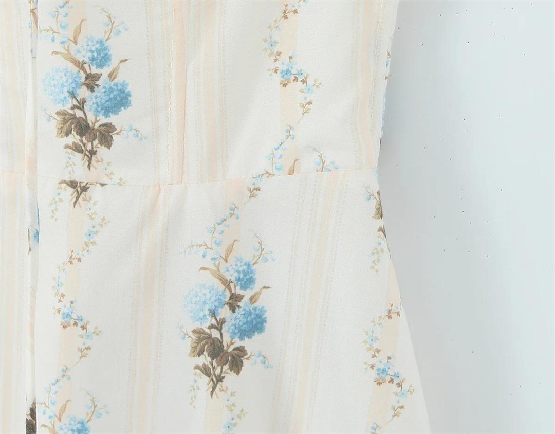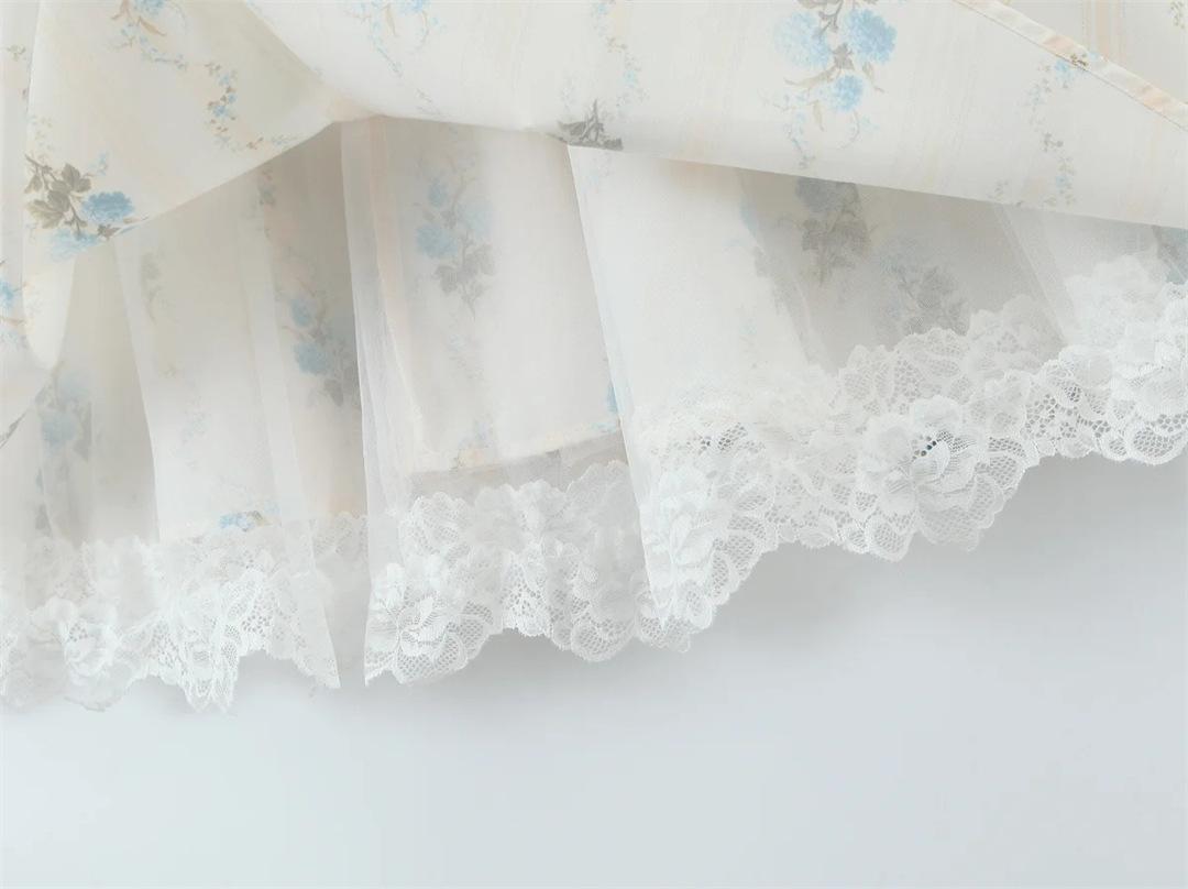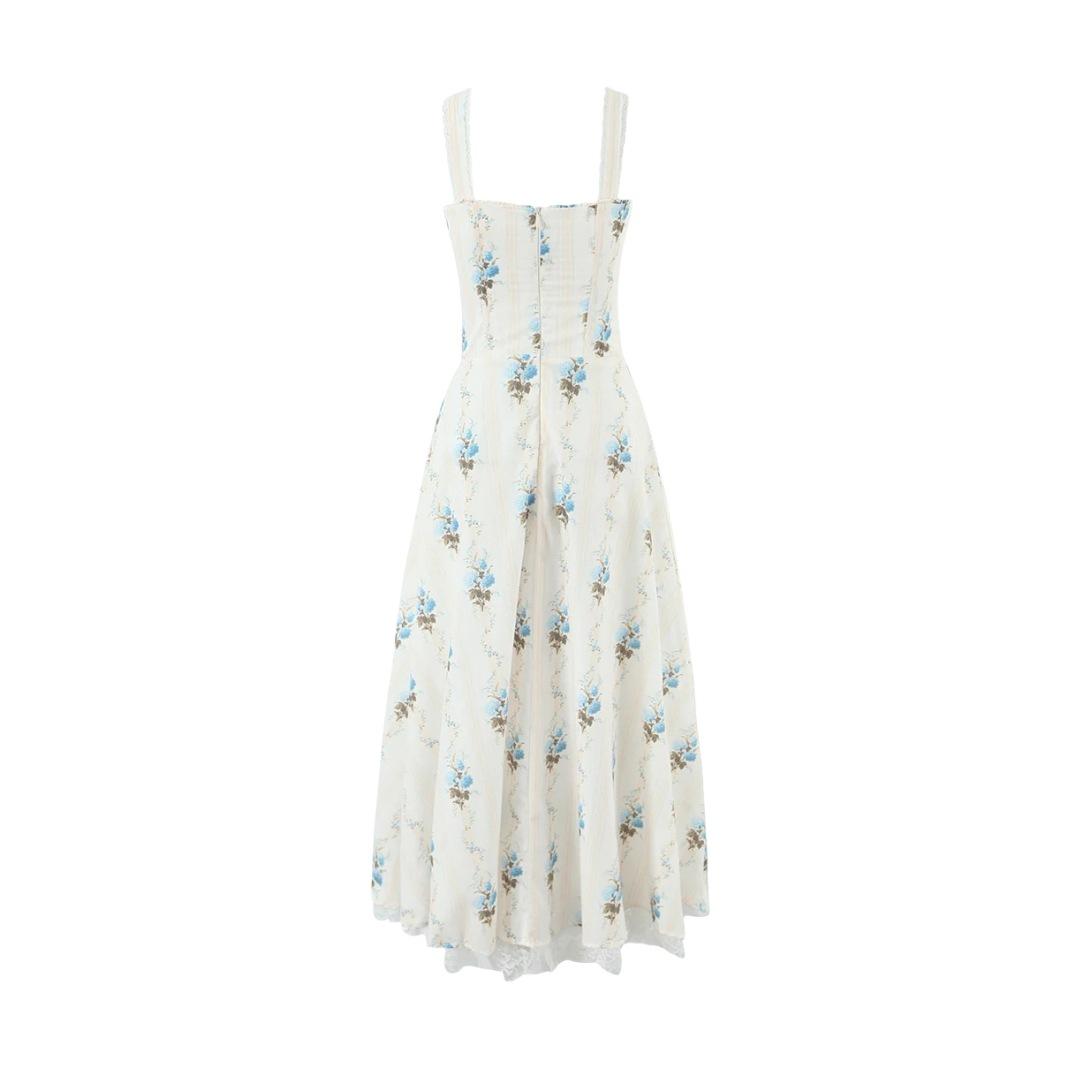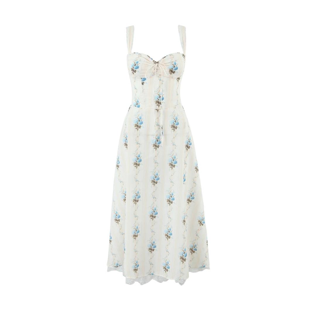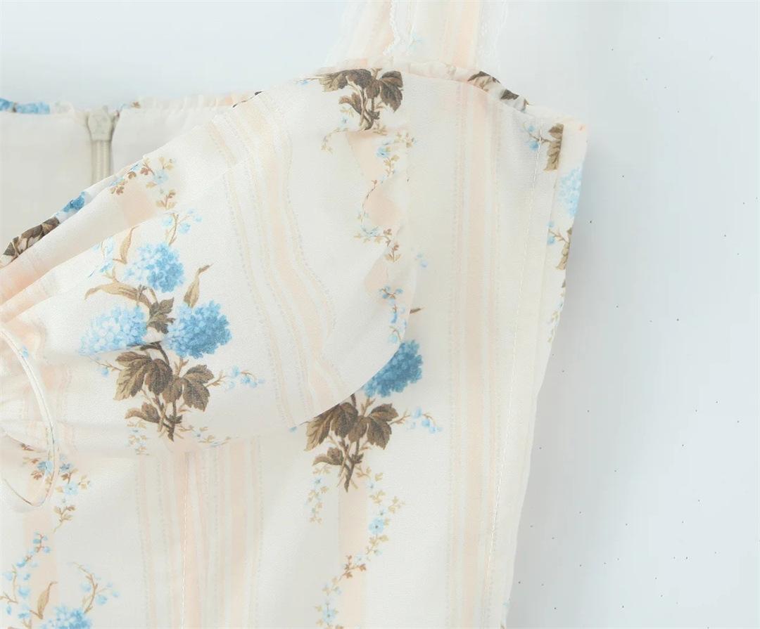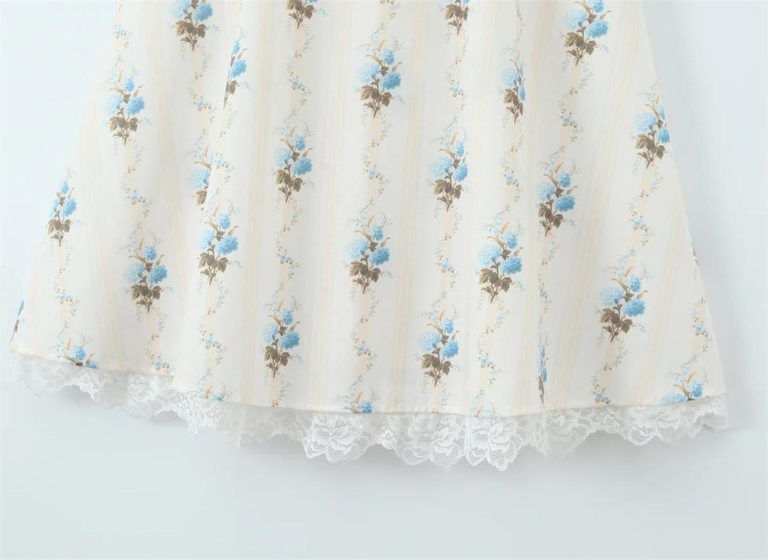 Compra Vestido de Cuello en V sin Tirantes con Espagueti, Cintura Estampada y Ribete de Encaje, Vestido Acampanado de Largo Medio al por mayor en Joom.pro
