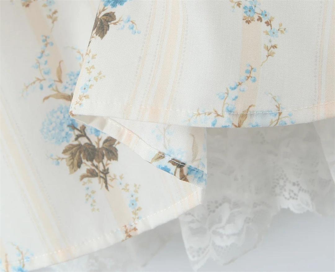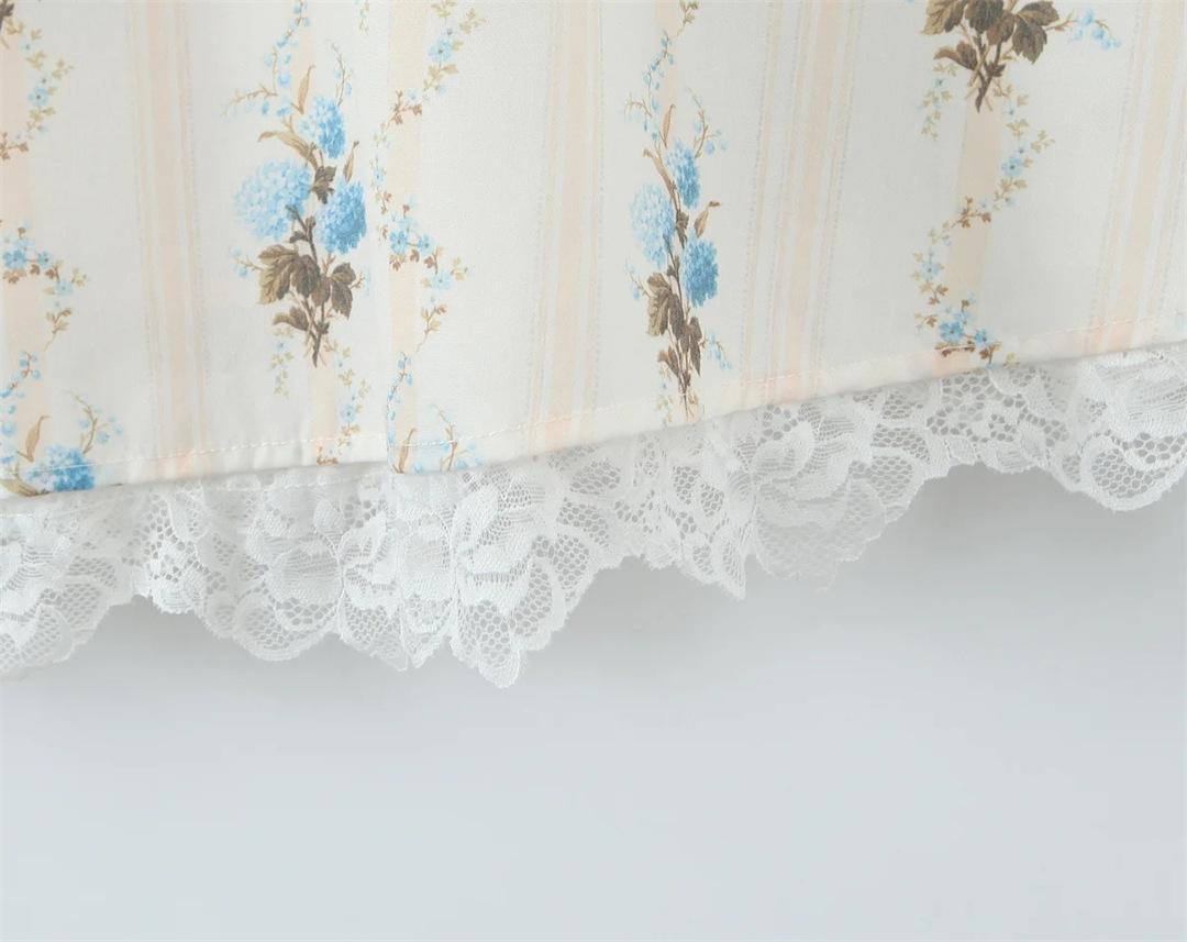 Vestido de Cuello en V sin Tirantes con Espagueti, Cintura Estampada y Ribete de Encaje, Vestido Acampanado de Largo Medio