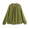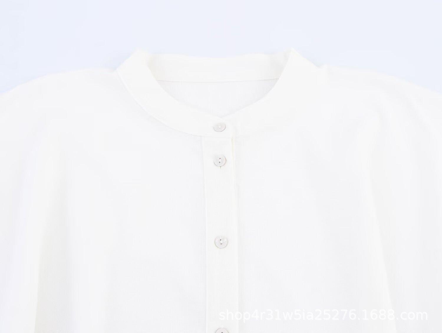 Amazon Mayoreo 2025 Verano Nuevo Versátil Color Sólido Cuello Mao Manga Larga Holgada Camisa de Un Solo Botón