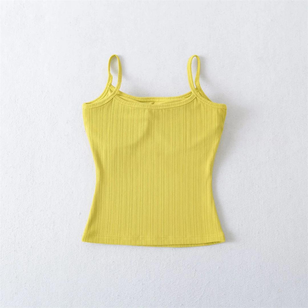 Compra Estilo Europeo y Americano Ropa Nueva para Mujer Lujuria Pura Chica Caliente Sexy Ajustado Corto Tirantes Fondo Chaleco con Almohadilla para el Pecho Top al por mayor en Joom.pro