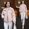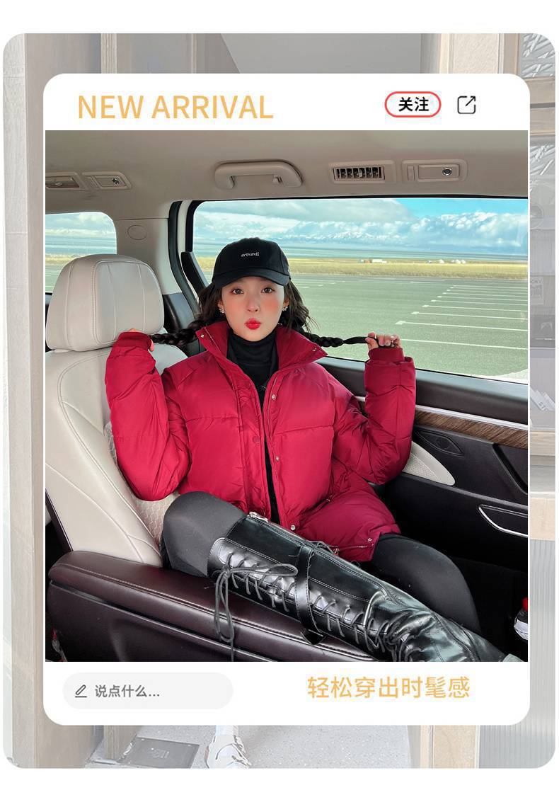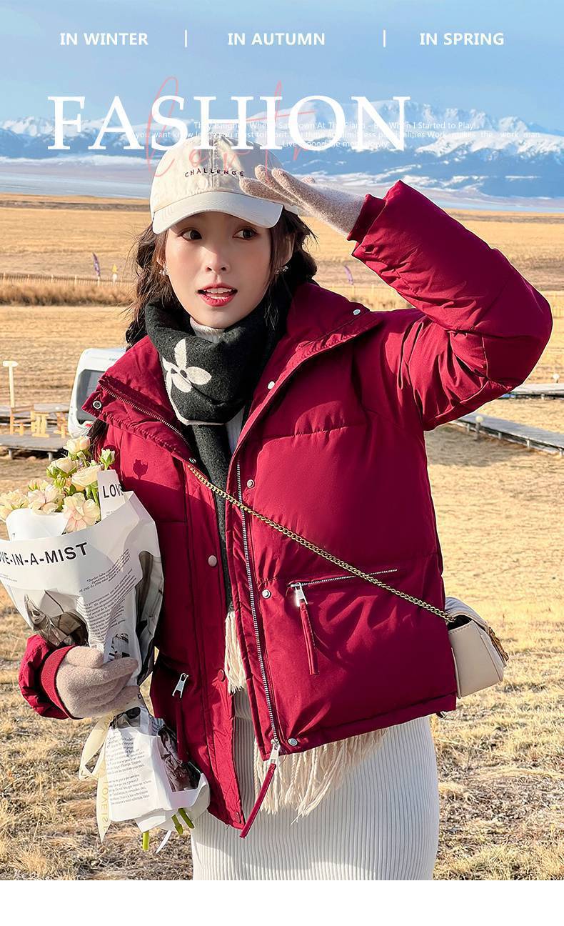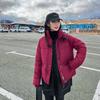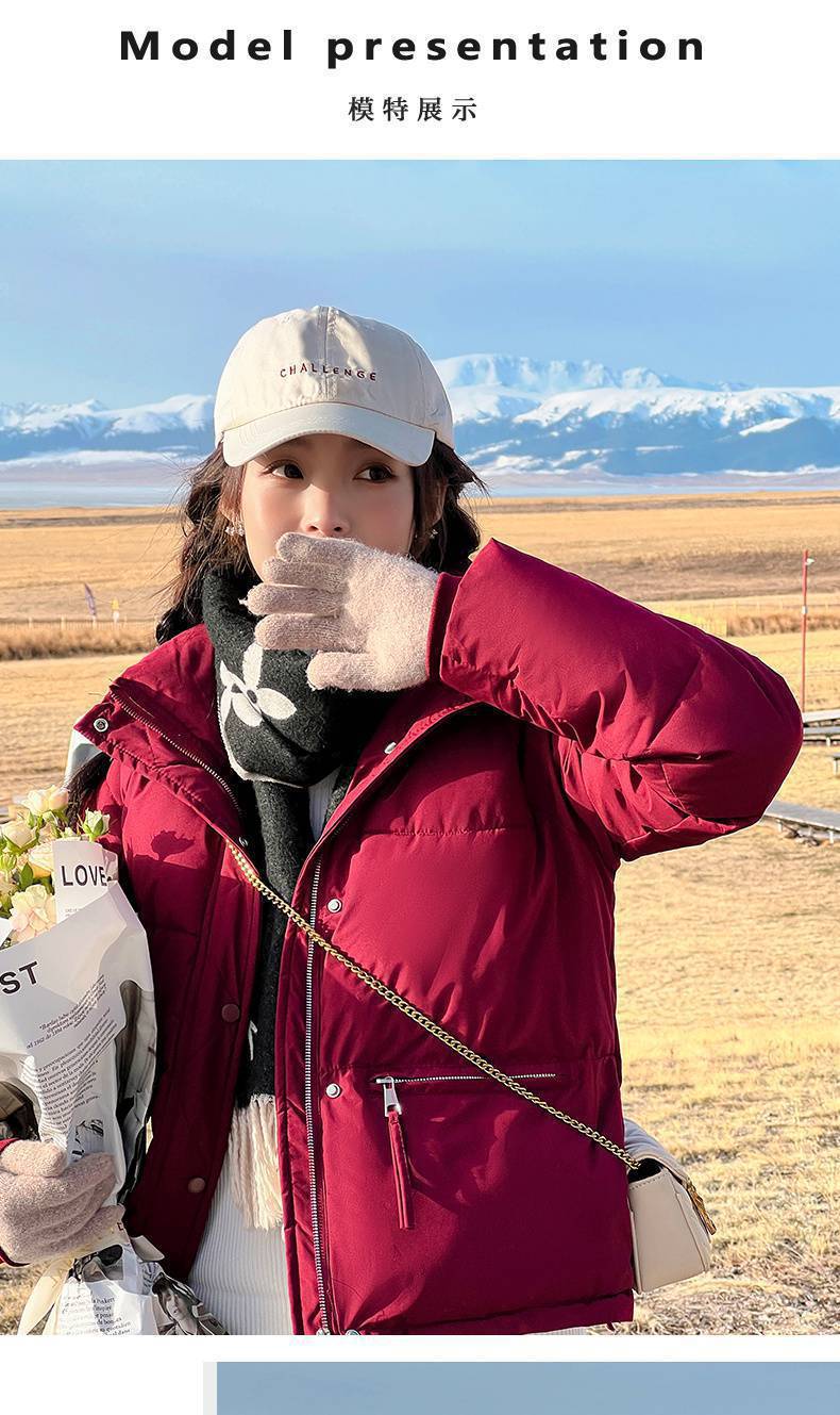 Chaqueta Corta de Algodón para Mujer para Otoño e Invierno 2024, Nuevo Abrigo de Algodón Acolchado Grueso Rojo Púrpura, Chaqueta Acolchada de Cuello Alto Estilo Universitario