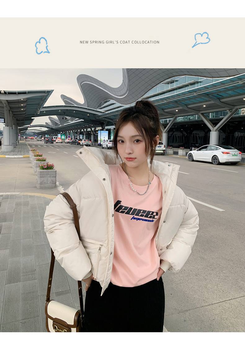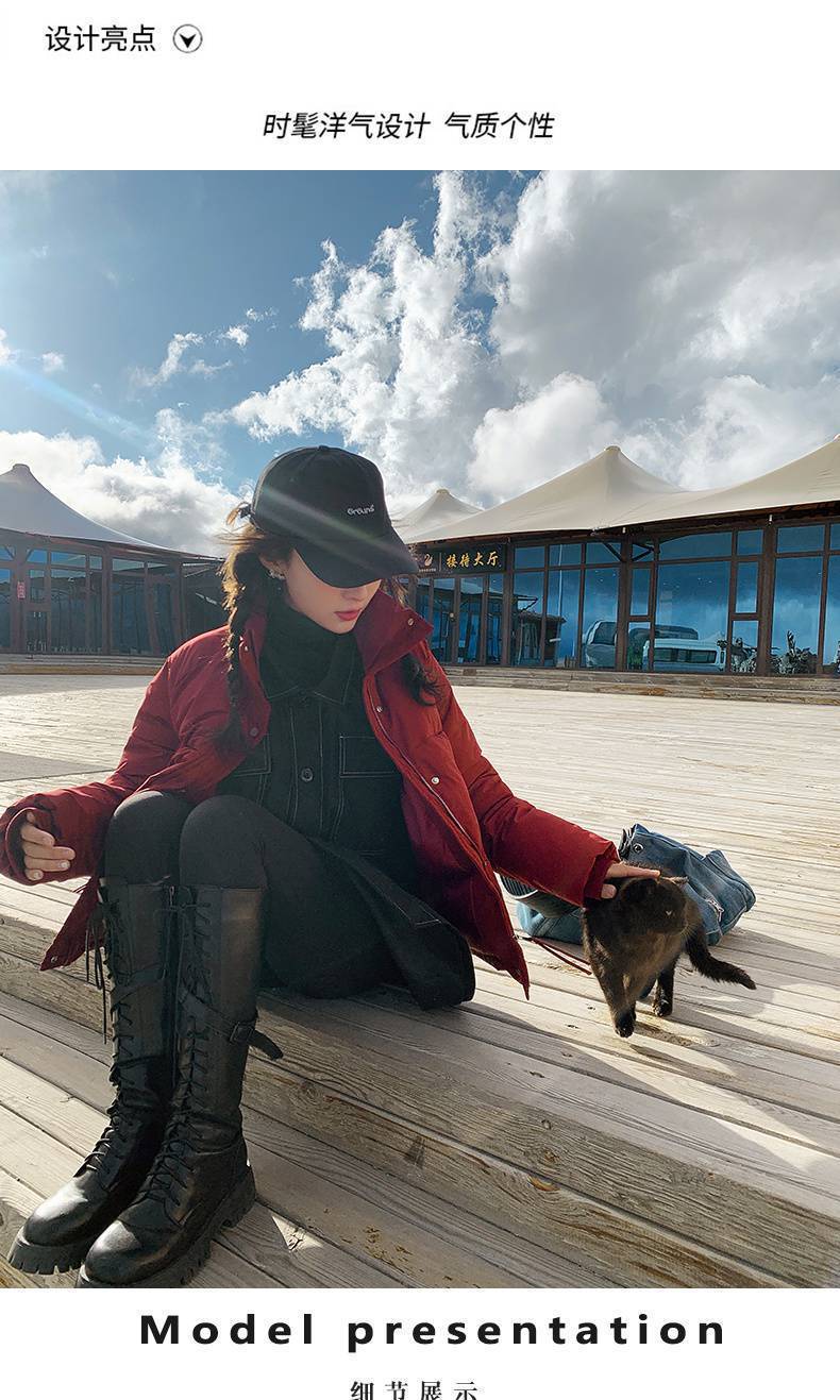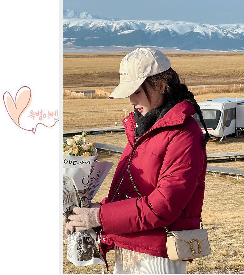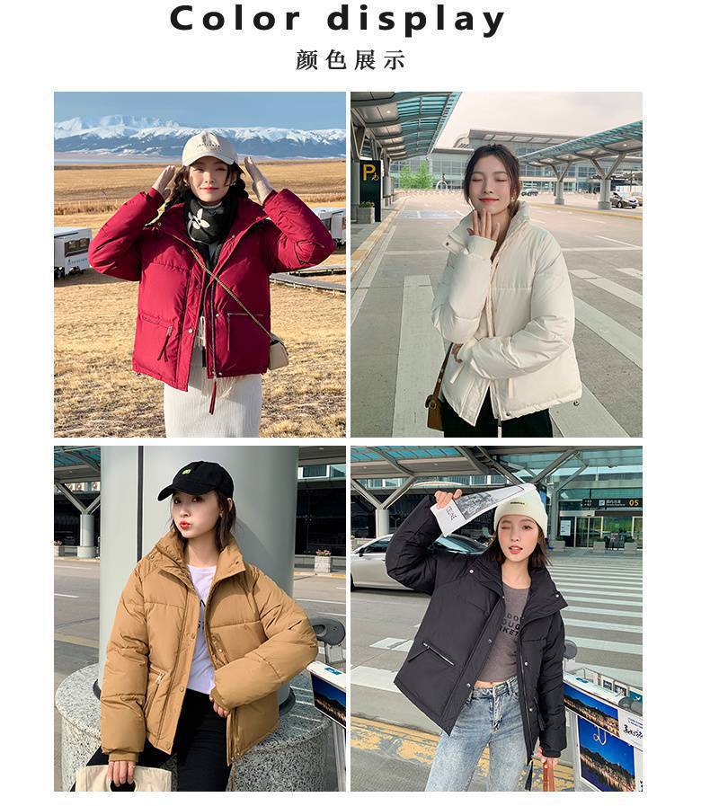 Chaqueta Corta de Algodón para Mujer para Otoño e Invierno 2024, Nuevo Abrigo de Algodón Acolchado Grueso Rojo Púrpura, Chaqueta Acolchada de Cuello Alto Estilo Universitario