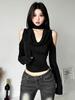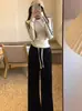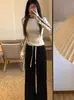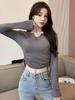 Moda Otoño Sexy Spice Girl Ajustado Ajustado Color Contraste Camiseta Manga Larga Deseo Puro Nicho Combinable Chic Top Rayado