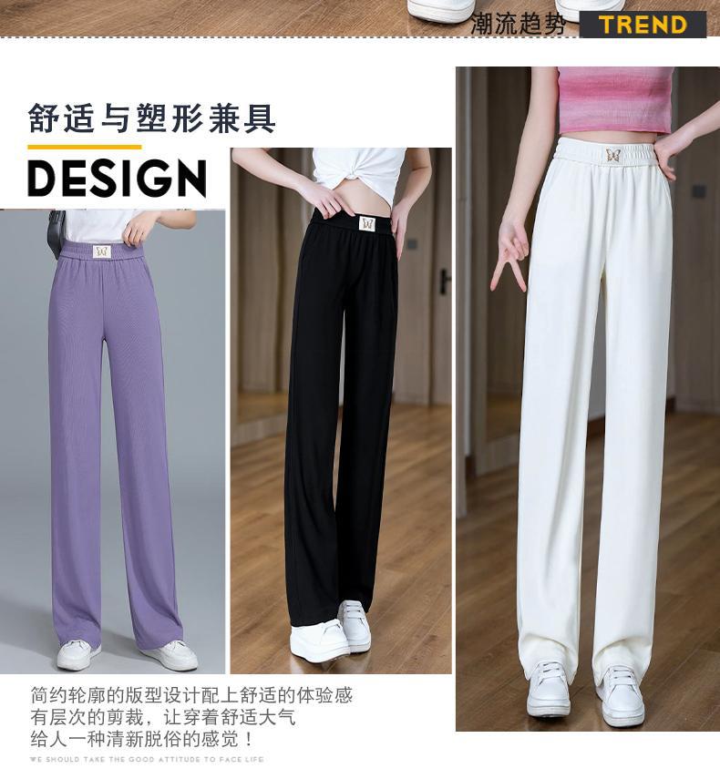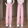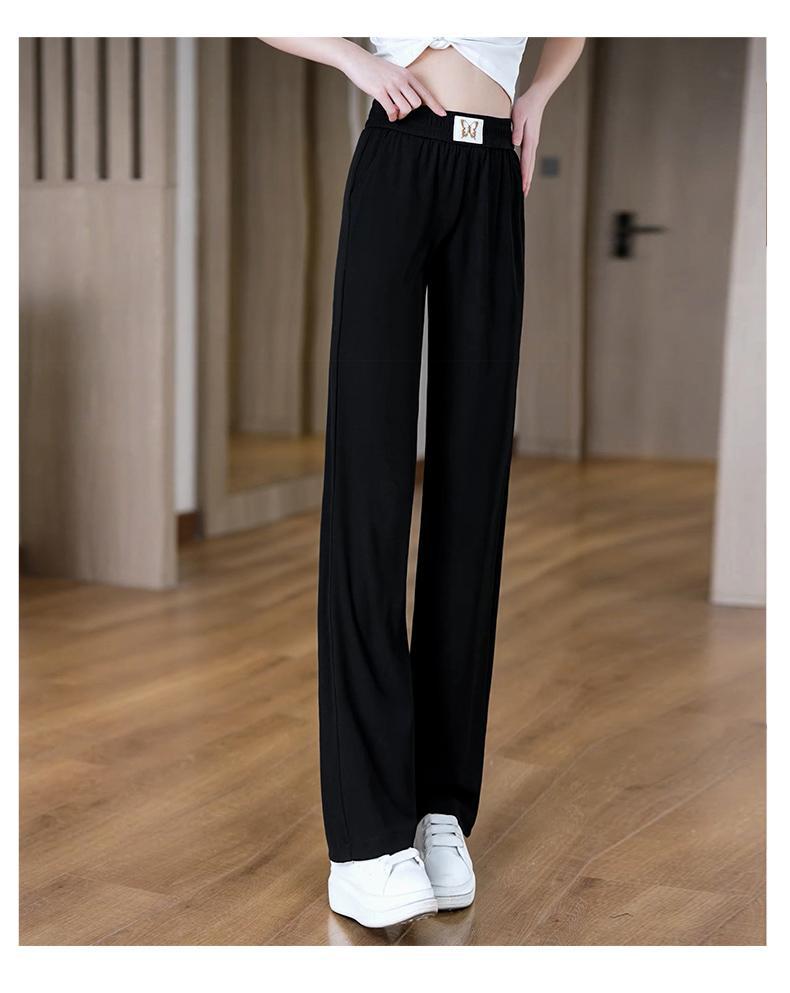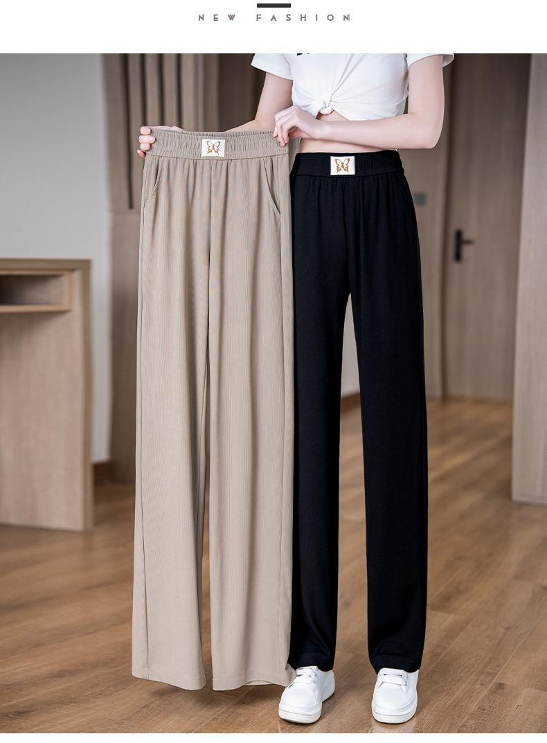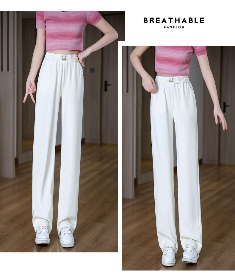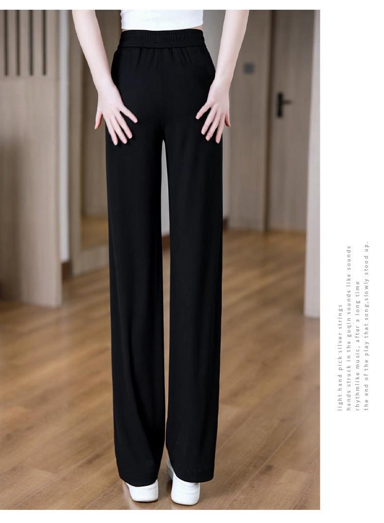 Pantalones de Pierna Ancha de Seda Helada para Mujer 2025 Nuevo Verano Delgados de Cintura Alta Adelgazantes Pantalones Rectos Sueltos Pantalones Casuales