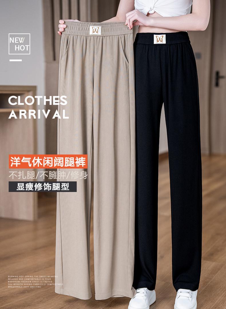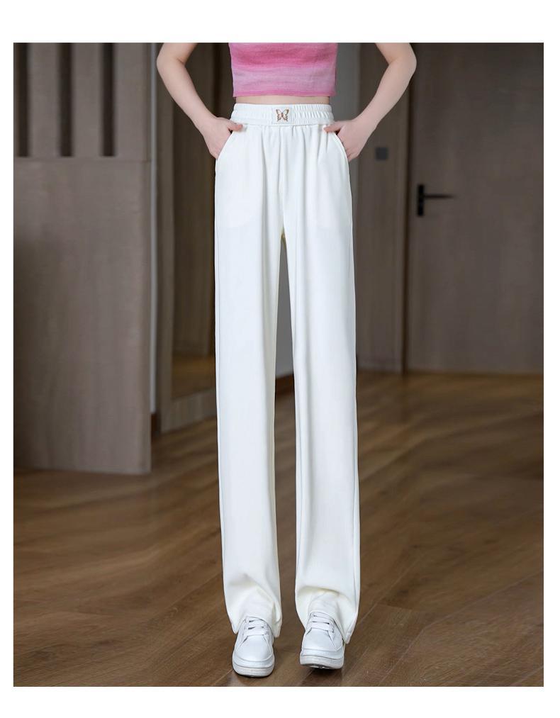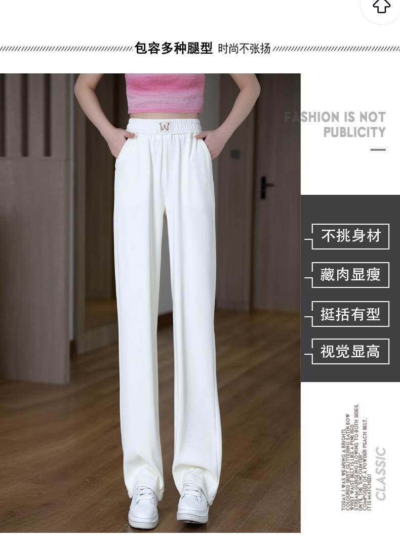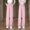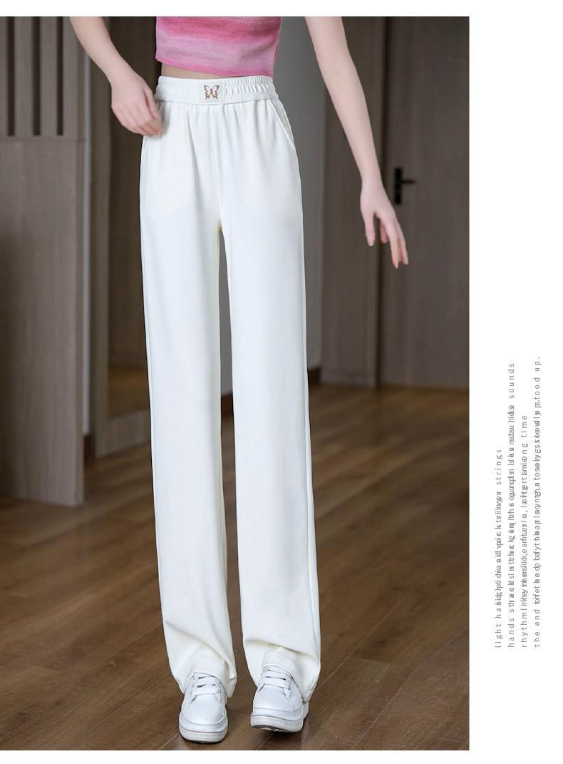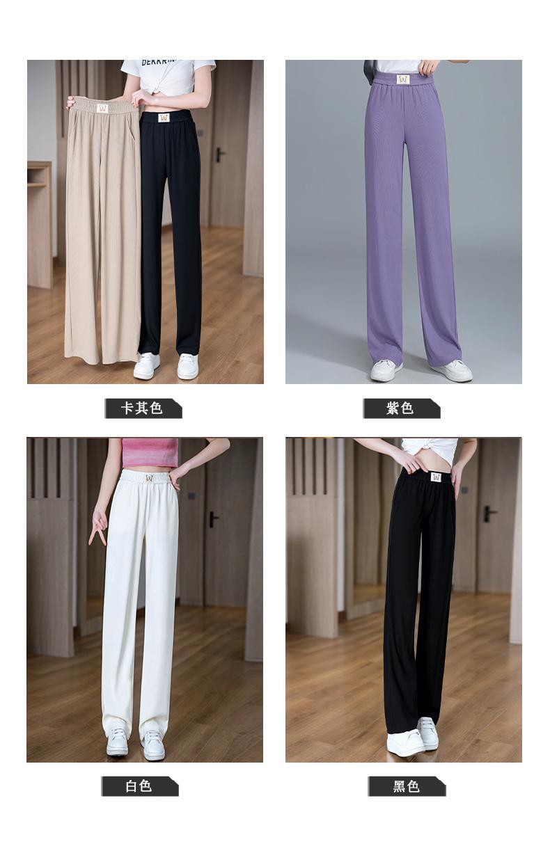Pantalones de Pierna Ancha de Seda Helada para Mujer 2025 Nuevo Verano Delgados de Cintura Alta Adelgazantes Pantalones Rectos Sueltos Pantalones Casuales