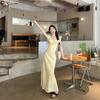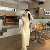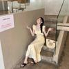 Foto Real 2025 Verano Nuevo Elegante Francés Ajustado Adelgazante Floral Cintura Cuello Cuadrado Vestido Vestido de Vacaciones