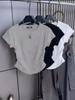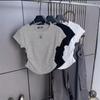 Camiseta Azul Bebé de Hombro Manga Corta para Mujer Verano 2024 Nueva Color Sólido Ajuste Slim Entallado Cintura Plisada Top Corto