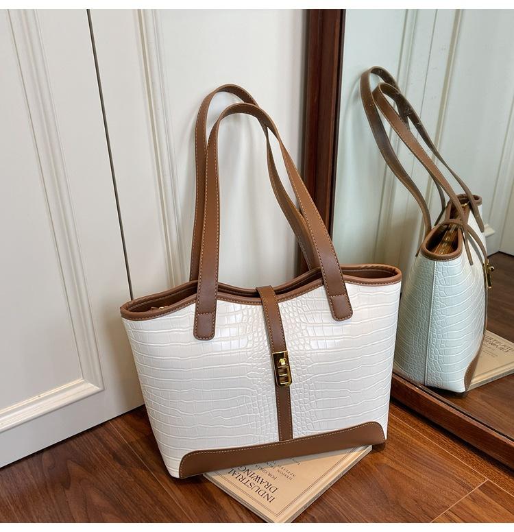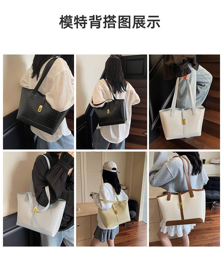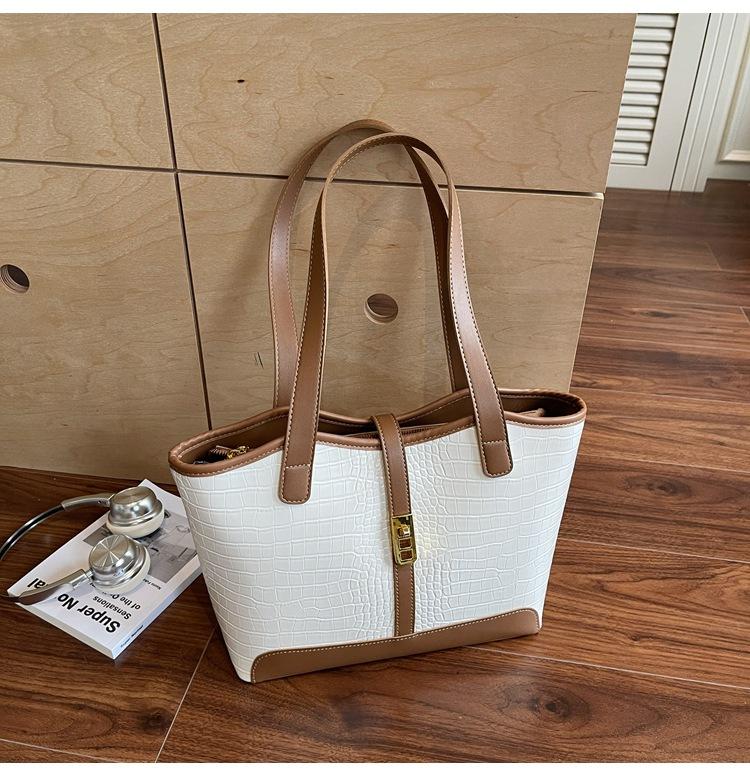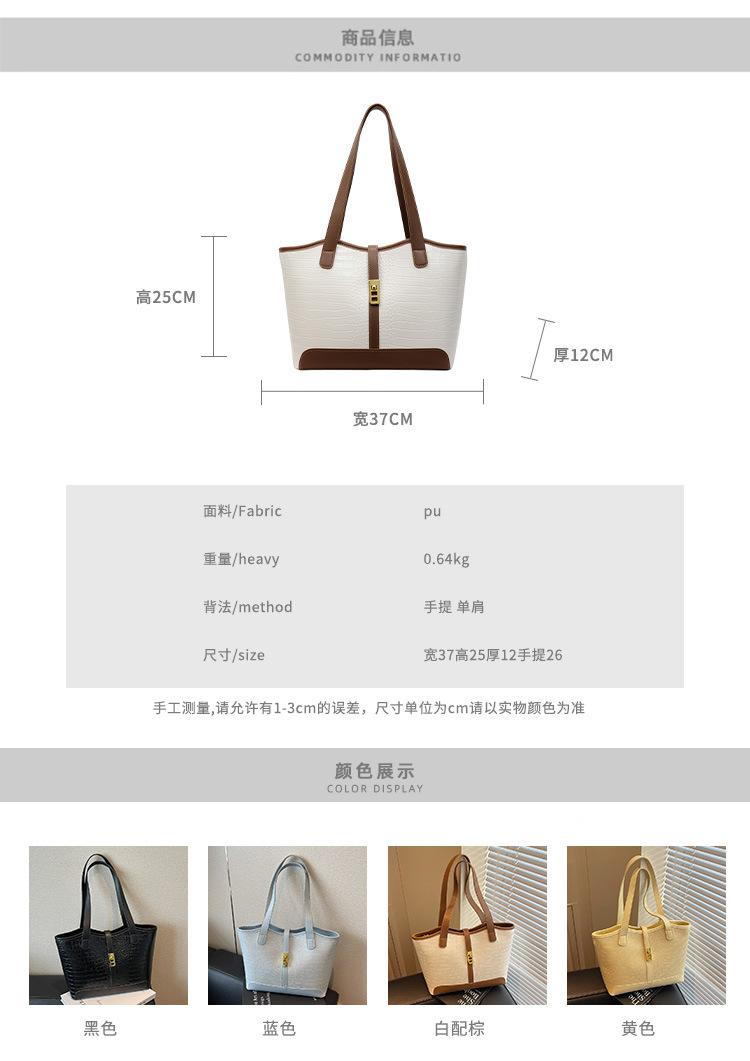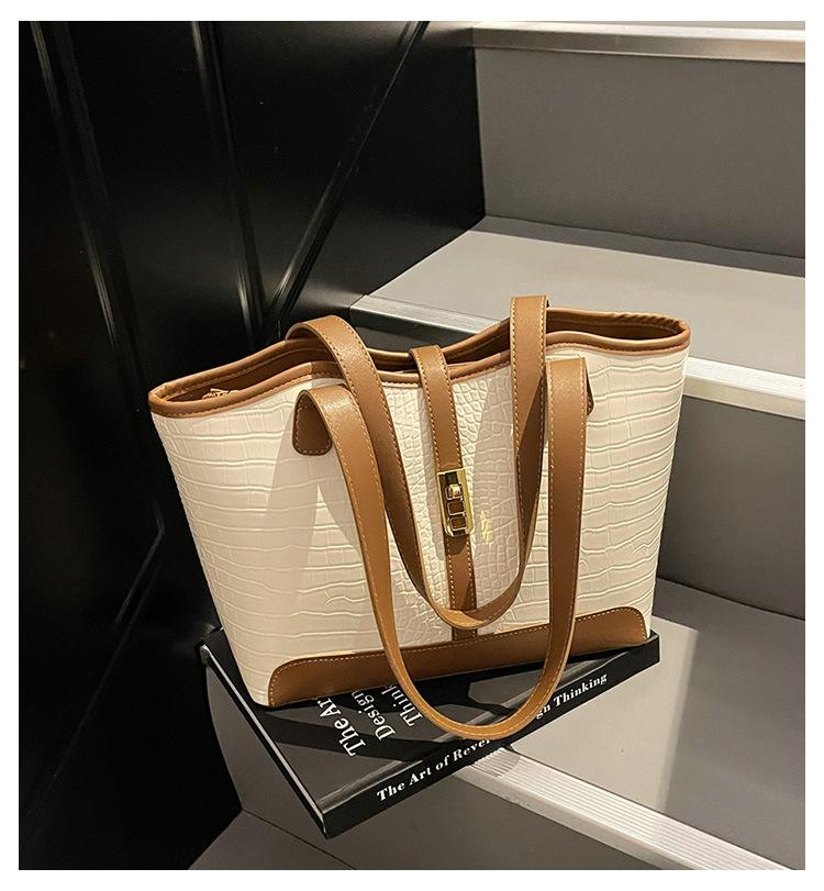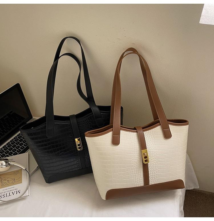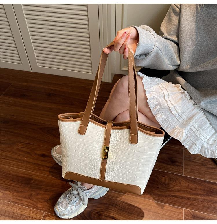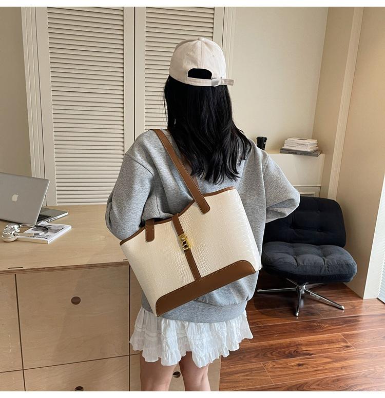 Bolso Tote para Mujer Nueva Moda Transfronteriza Color Contrastante Popular Bolso de Hombro Casual Versátil Gran Capacidad Bolso Balde
